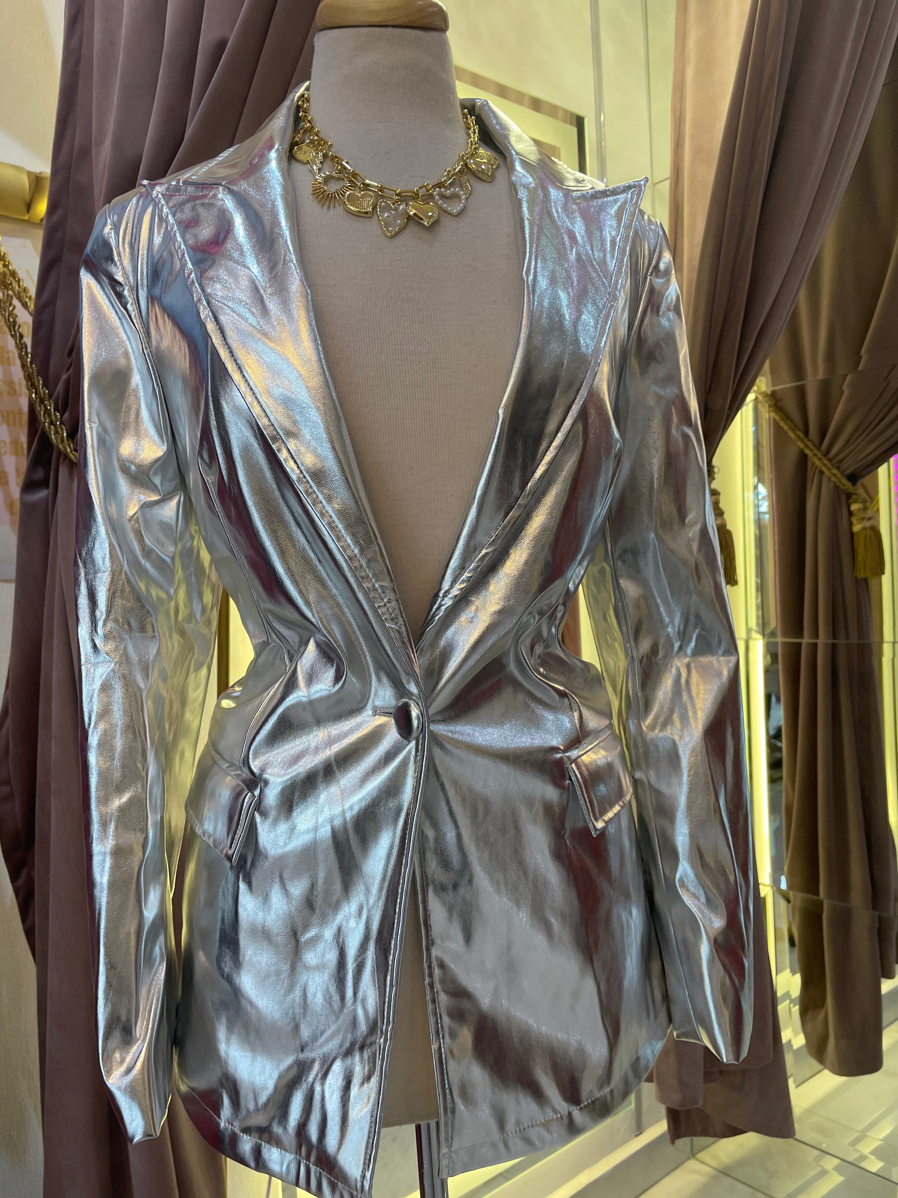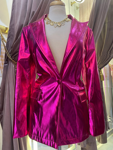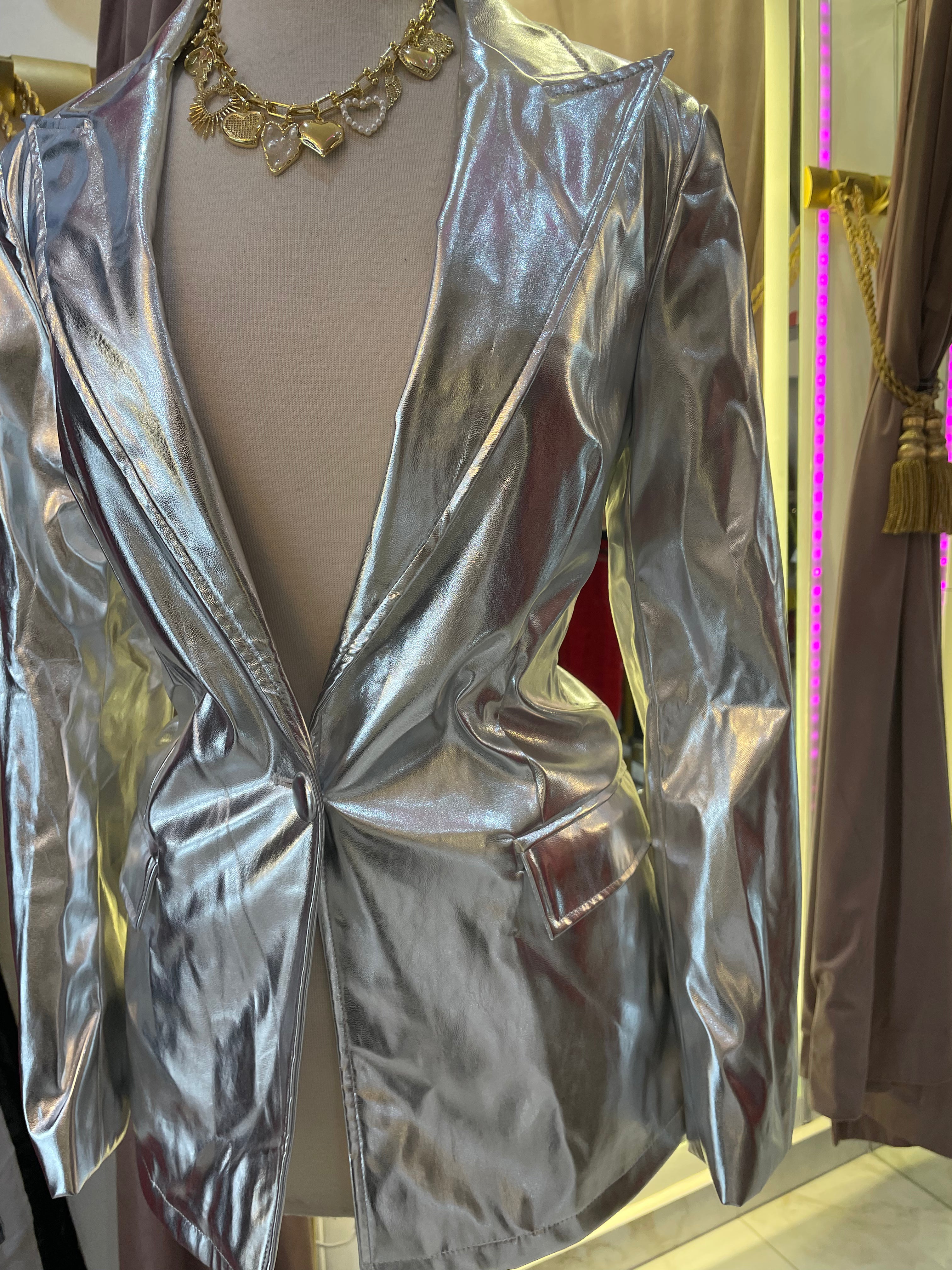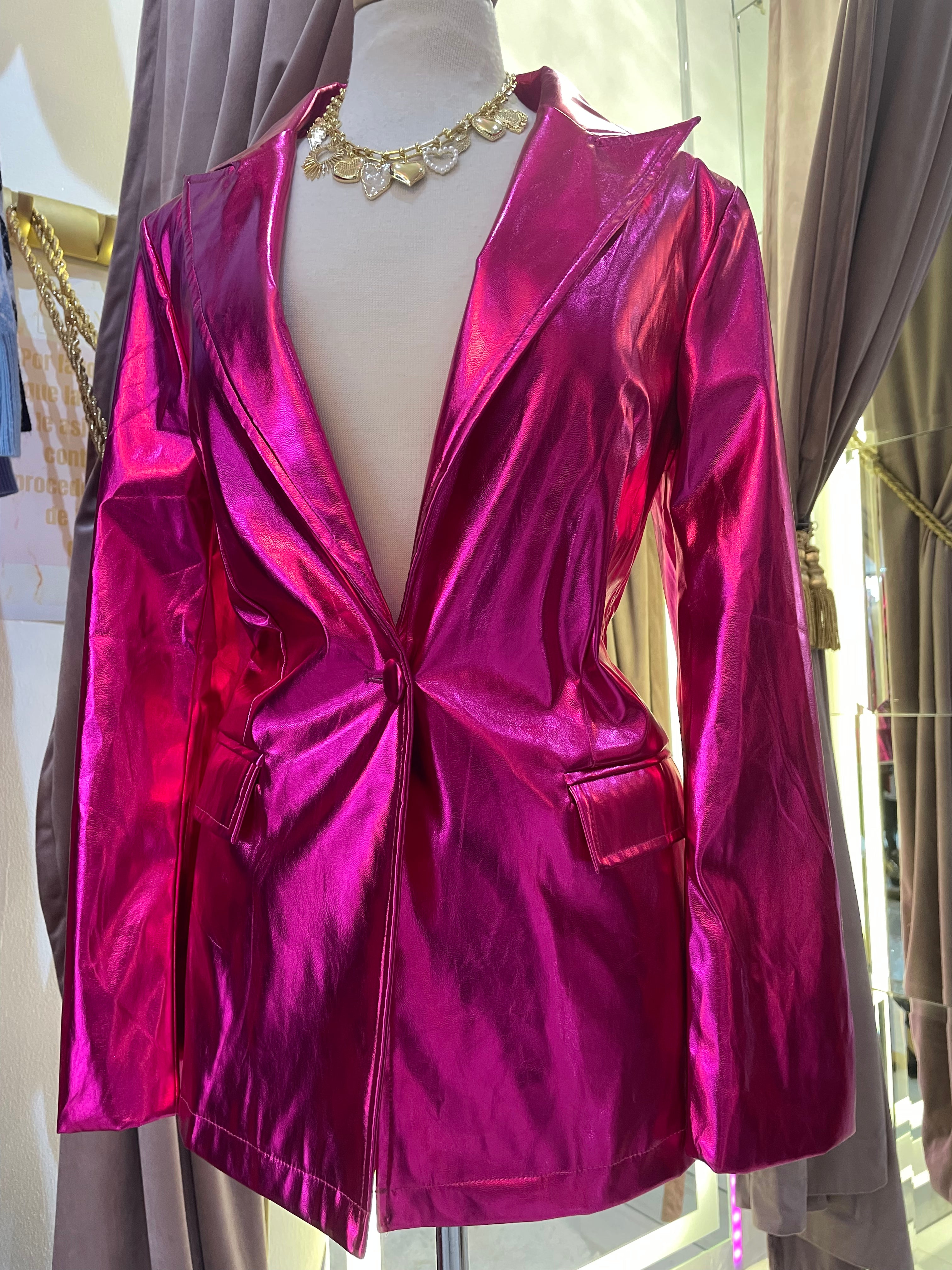 Este blazer metálico es la definición de estilo y sofisticación moderna. Disponible en tres impresionantes colores: un vibrante rosa metálico, un elegante plateado y un lujoso dorado, esta prenda es perfecta para quienes buscan destacar con un look audaz y glamuroso. Su diseño estructurado con solapas clásicas y corte entallado realza la figura, mientras que el brillo del material añade un toque futurista y atrevido. Es la opción ideal para eventos nocturnos, fiestas o cualquier ocasión donde quieras ser el centro de todas las miradas. Este blazer no solo es una prenda de vestir, es una declaración de estilo.