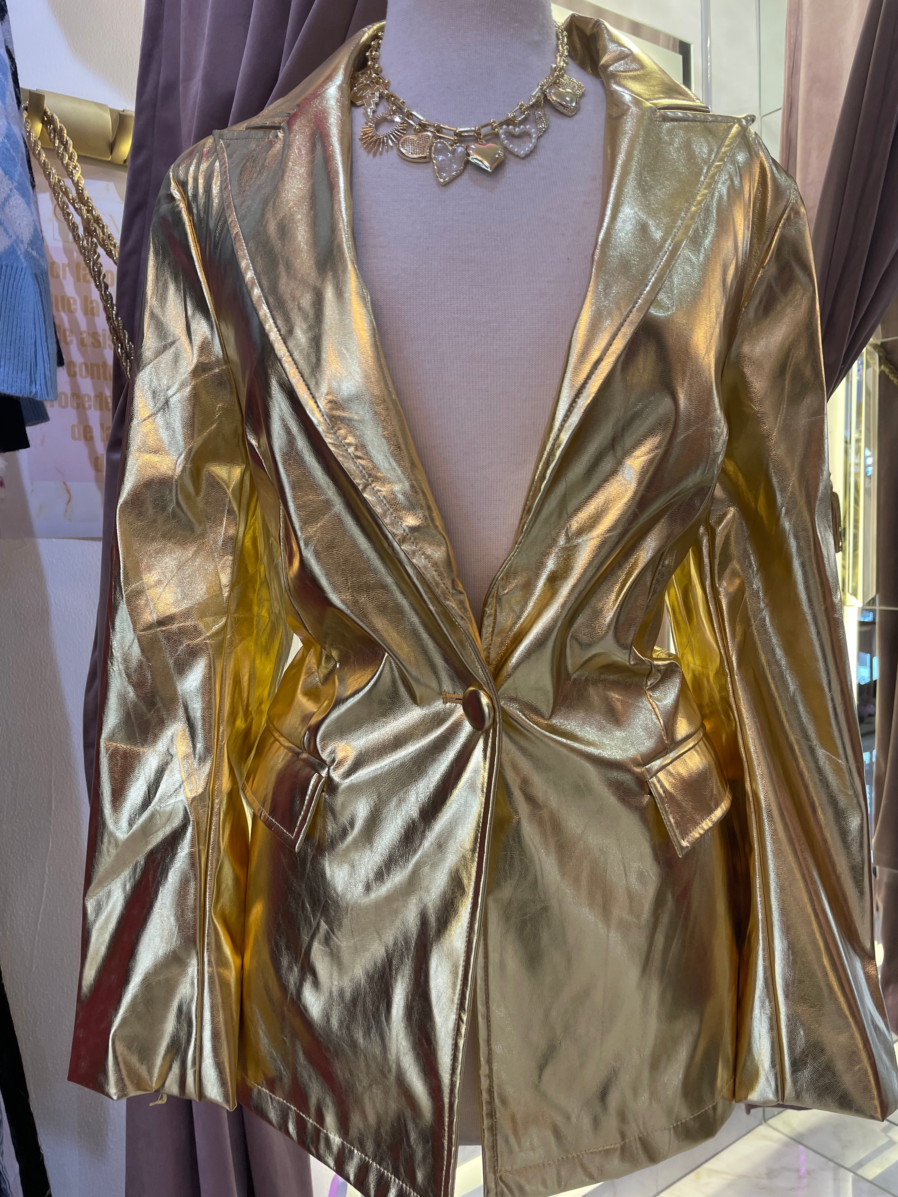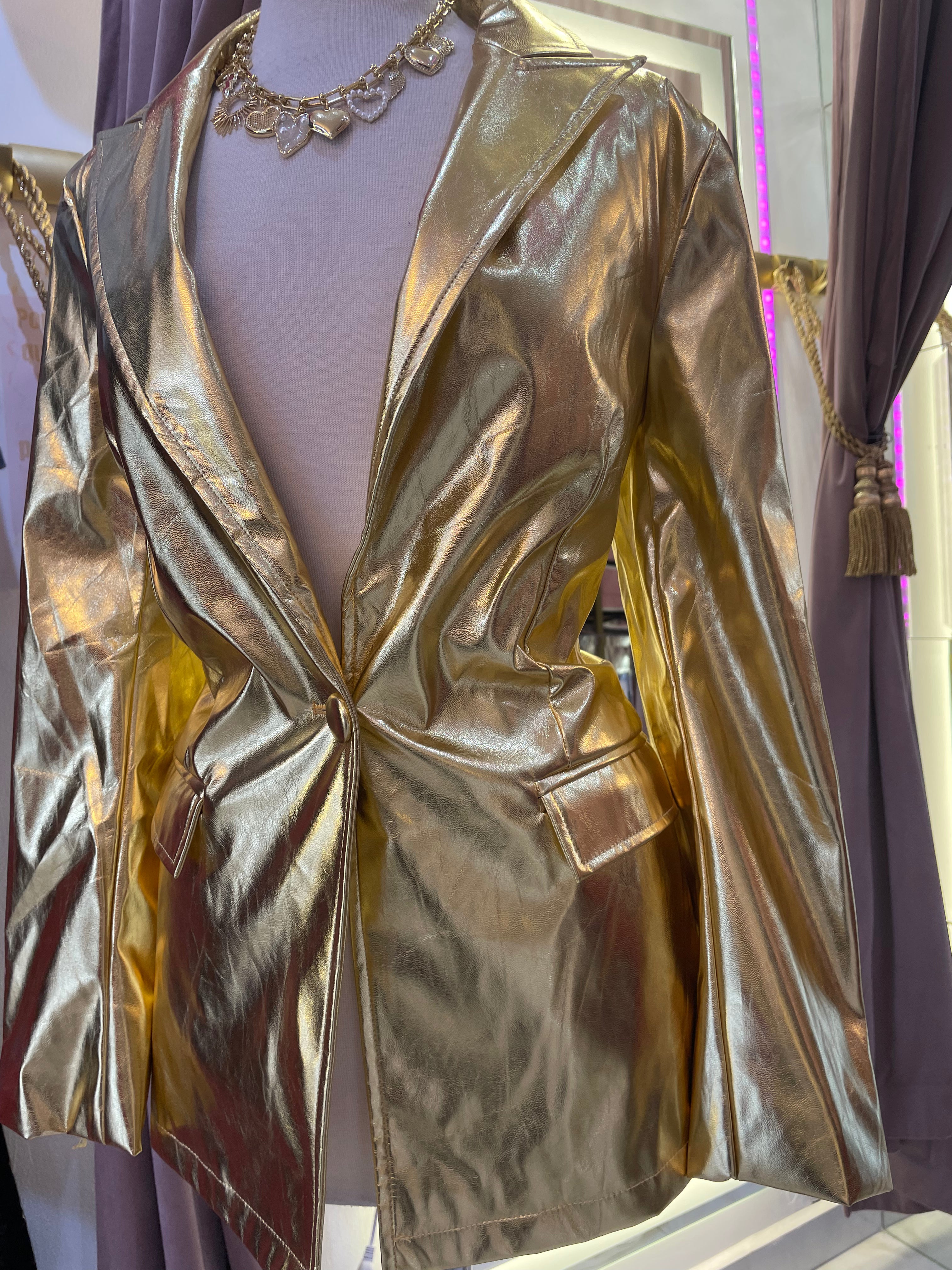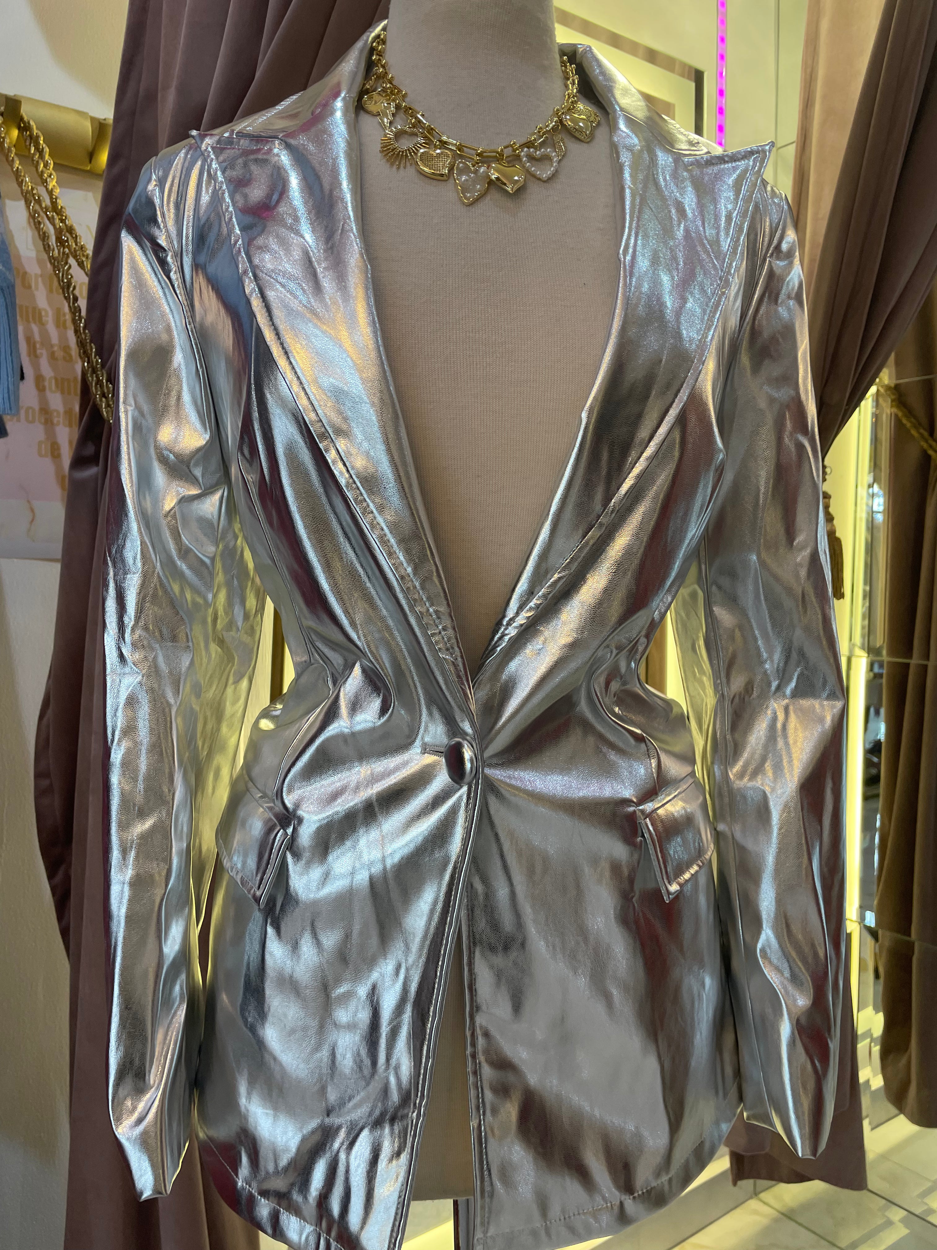 Este blazer metálico es la definición de estilo y sofisticación moderna. Disponible en tres impresionantes colores: un vibrante rosa metálico, un elegante plateado y un lujoso dorado, esta prenda es perfecta para quienes buscan destacar con un look audaz y glamuroso. Su diseño estructurado con solapas clásicas y corte entallado realza la figura, mientras que el brillo del material añade un toque futurista y atrevido. Es la opción ideal para eventos nocturnos, fiestas o cualquier ocasión donde quieras ser el centro de todas las miradas. Este blazer no solo es una prenda de vestir, es una declaración de estilo.