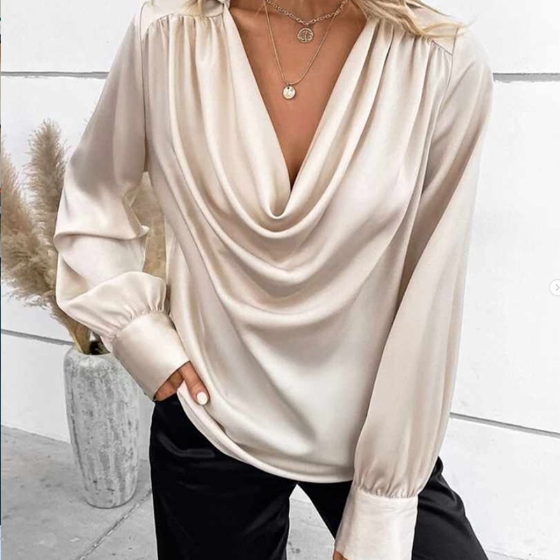 BLUSA BEIGE ENCAJE MANGA LARGA
