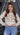 Negro con diseño blanco: Una opción más contrastante y audaz. El diseño en blanco resalta sobre el fondo oscuro, creando un estilo sofisticado y atemporal, perfecto para eventos nocturnos o conjuntos más formales.