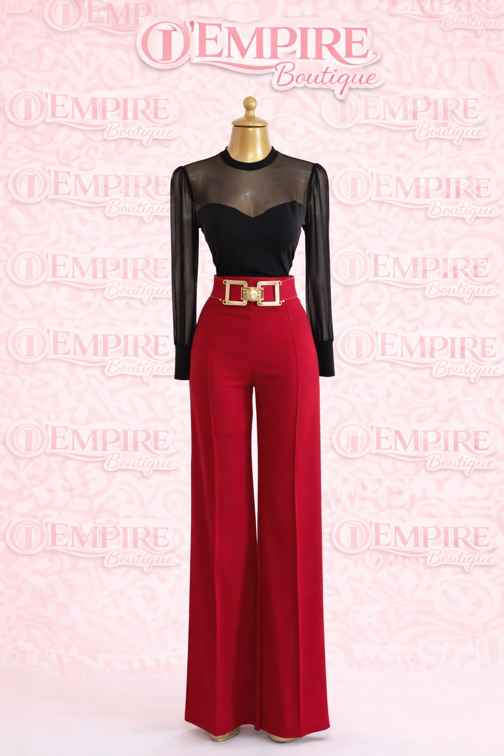 Palazzo de estilo sofisticado diseñado para estilizar la silueta gracias a su tiro alto y caída amplia que alarga visualmente las piernas. Su cintura estructurada se complementa con un cinturón metálico decorativo que aporta un toque moderno, elegante y llamativo, convirtiéndolo en una prenda protagonista para cualquier ocasión especial.