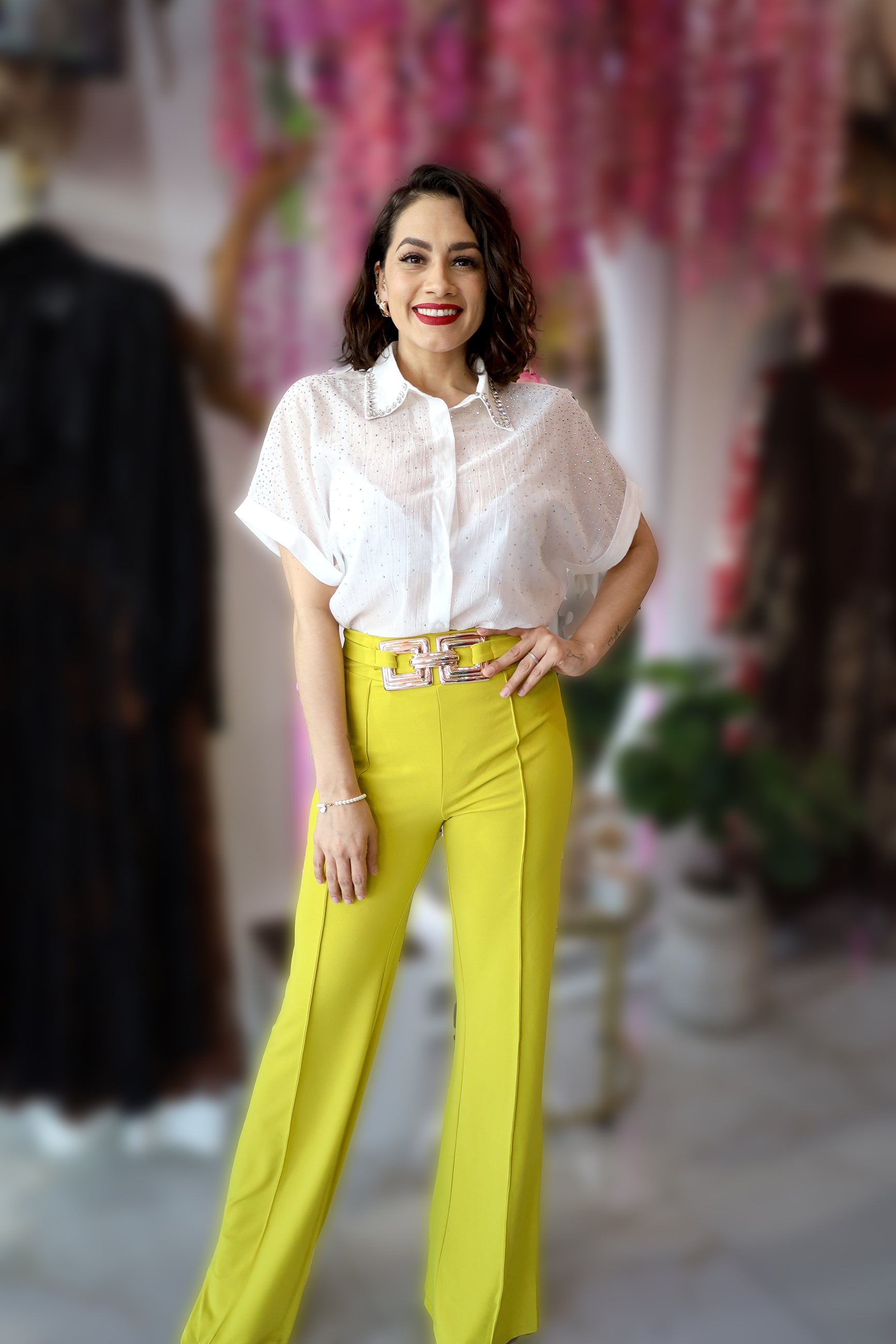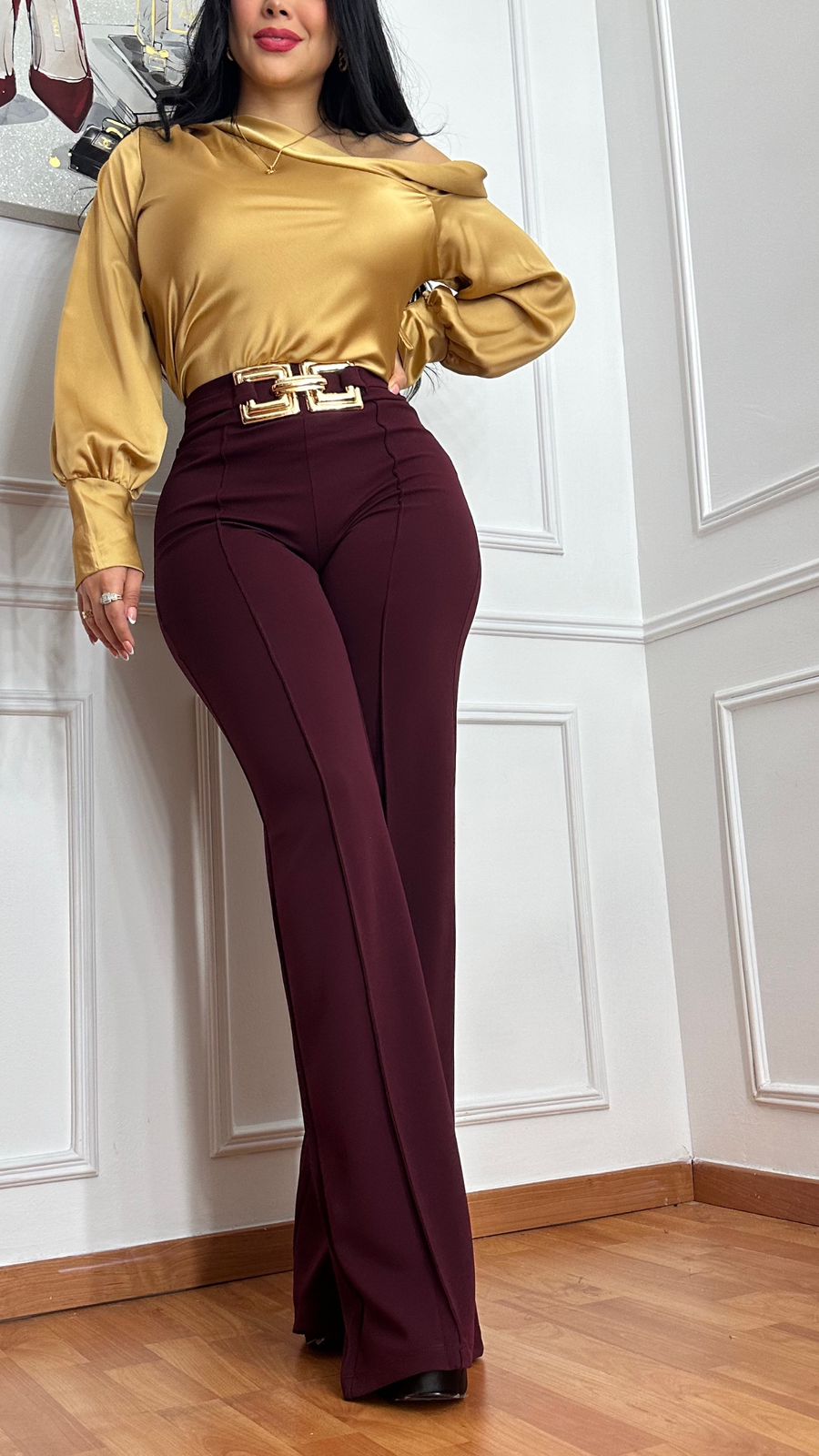 Experimenta un estilo elegante y cómodo con nuestro PALAZZO HEBILLA DORADA en cuatro colores diferentes: vino, amarillo, rojo y blanco. Con su hebilla dorada, este pantalón te dará un toque único y sofisticado. Perfecto para cualquier ocasión, ¡añádelo a tu armario hoy!