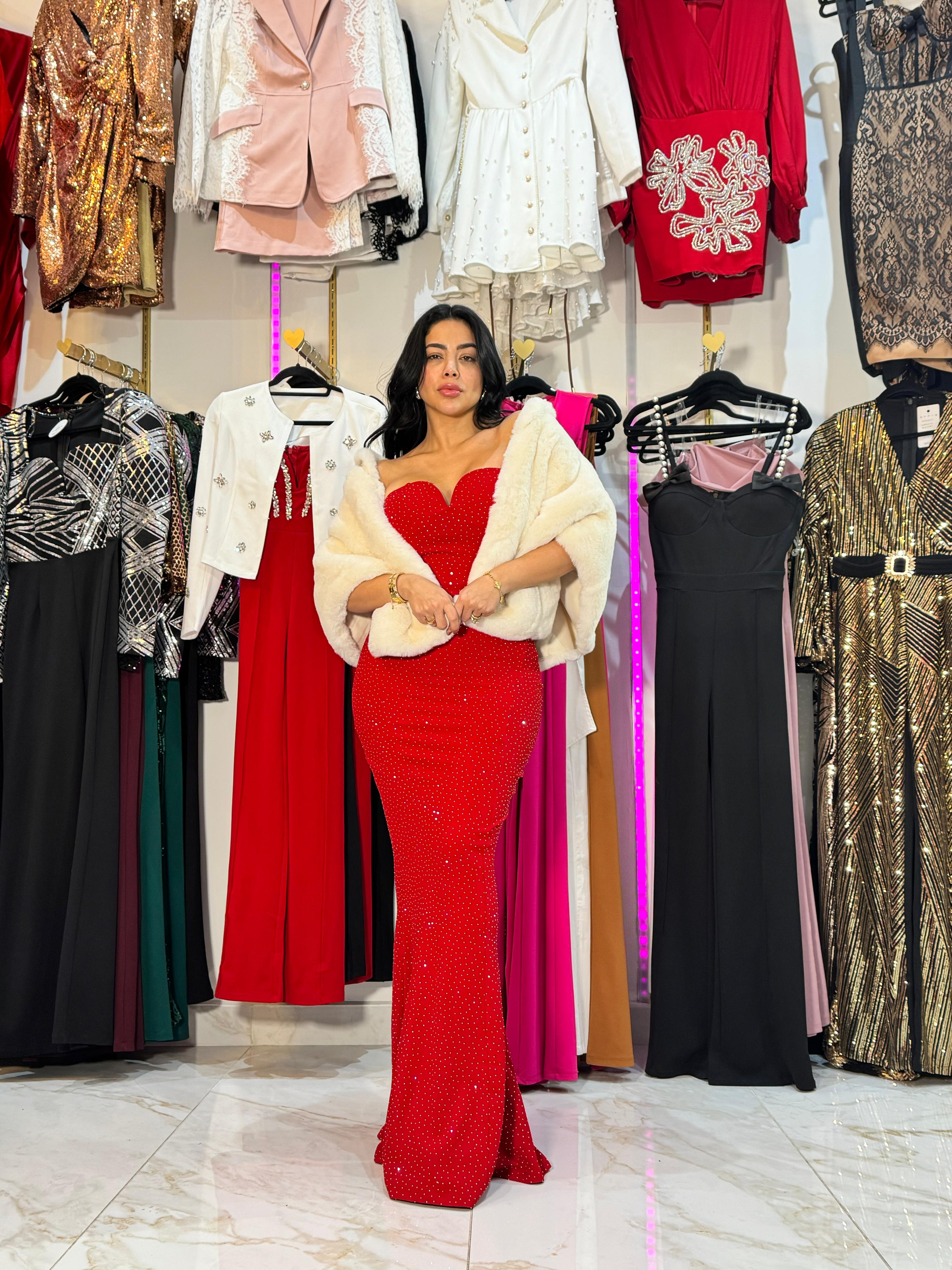 VESTIDO BLACK/RED BRILLOS CORTE SIRENA