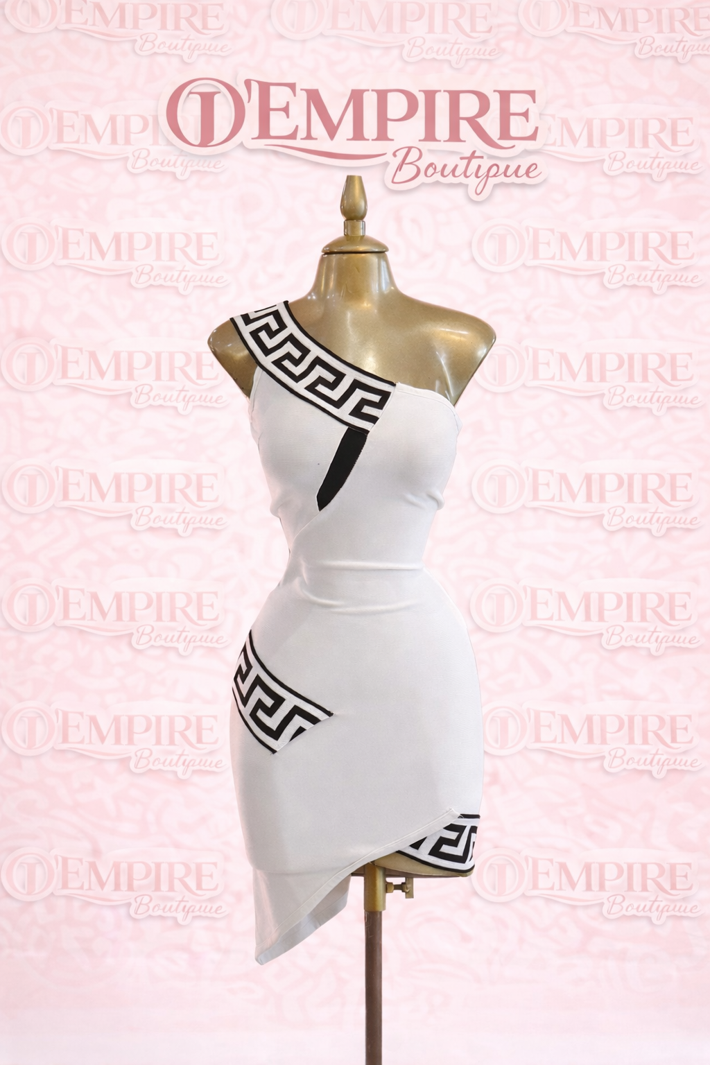 Vestido corto de estilo moderno y sofisticado diseñado para resaltar la silueta con un ajuste ceñido y femenino. Su escote asimétrico de un solo hombro aporta un toque elegante y vanguardista, mientras que los detalles geométricos en contraste crean un efecto visual llamativo y contemporáneo.