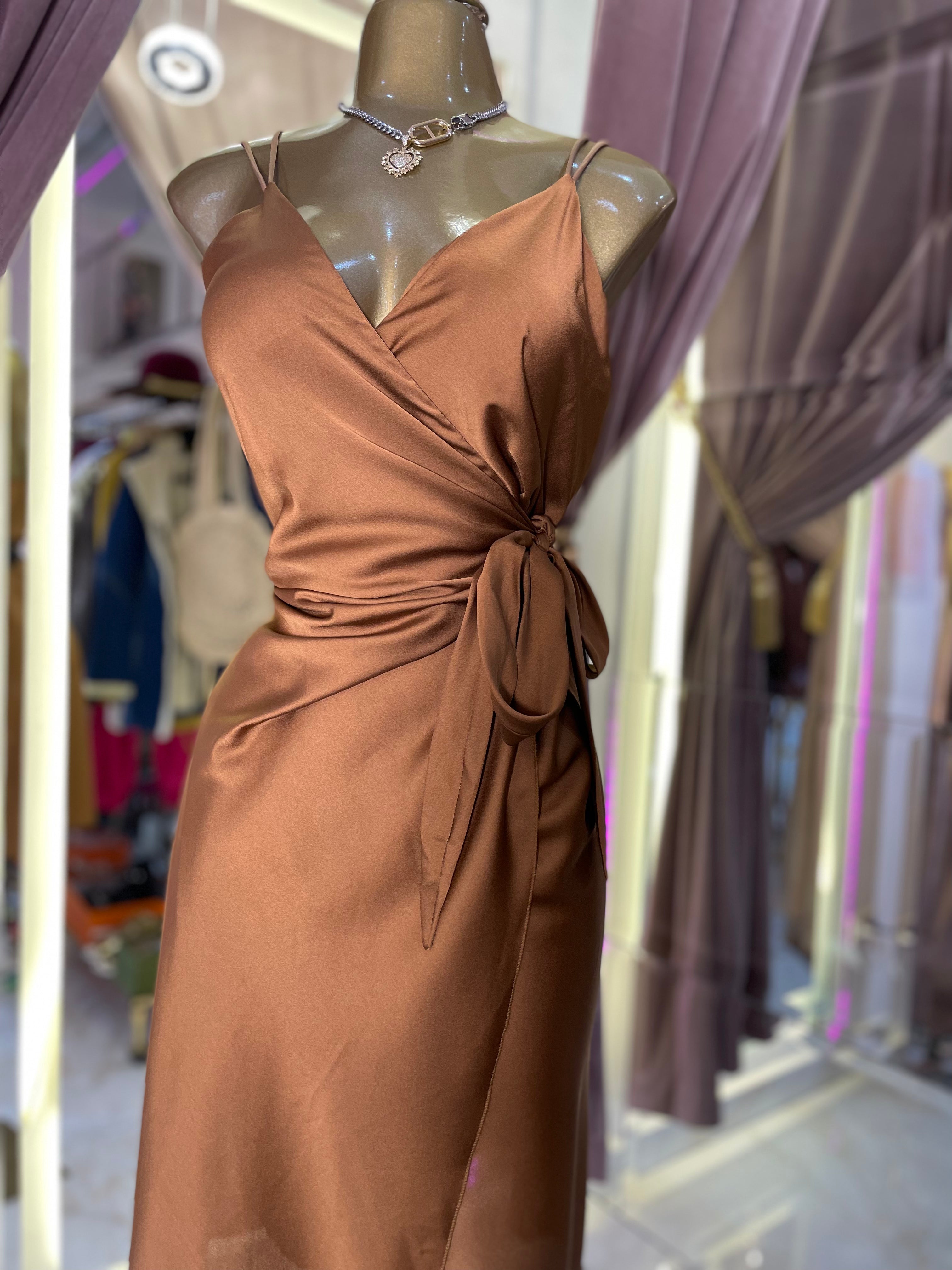 Disfruta de la comodidad y sofisticación con nuestro VESTIDO CAFÉ TIRANTES SEDA. Fabricado con suave seda, este vestido es ideal para cualquier ocasión. Los tirantes agregan un toque de elegancia a este clásico café. ¡Realza tu estilo con este vestido de calidad!