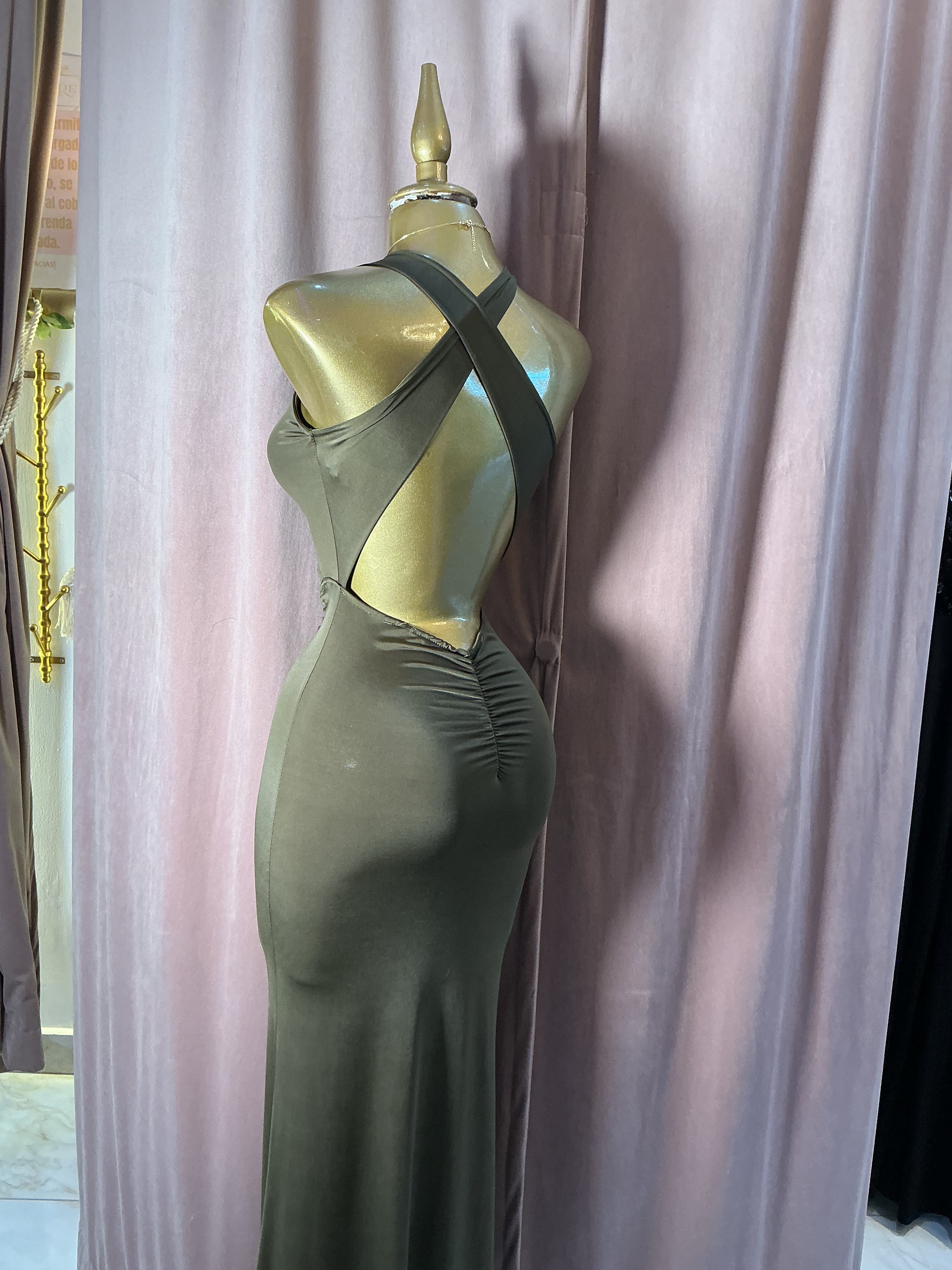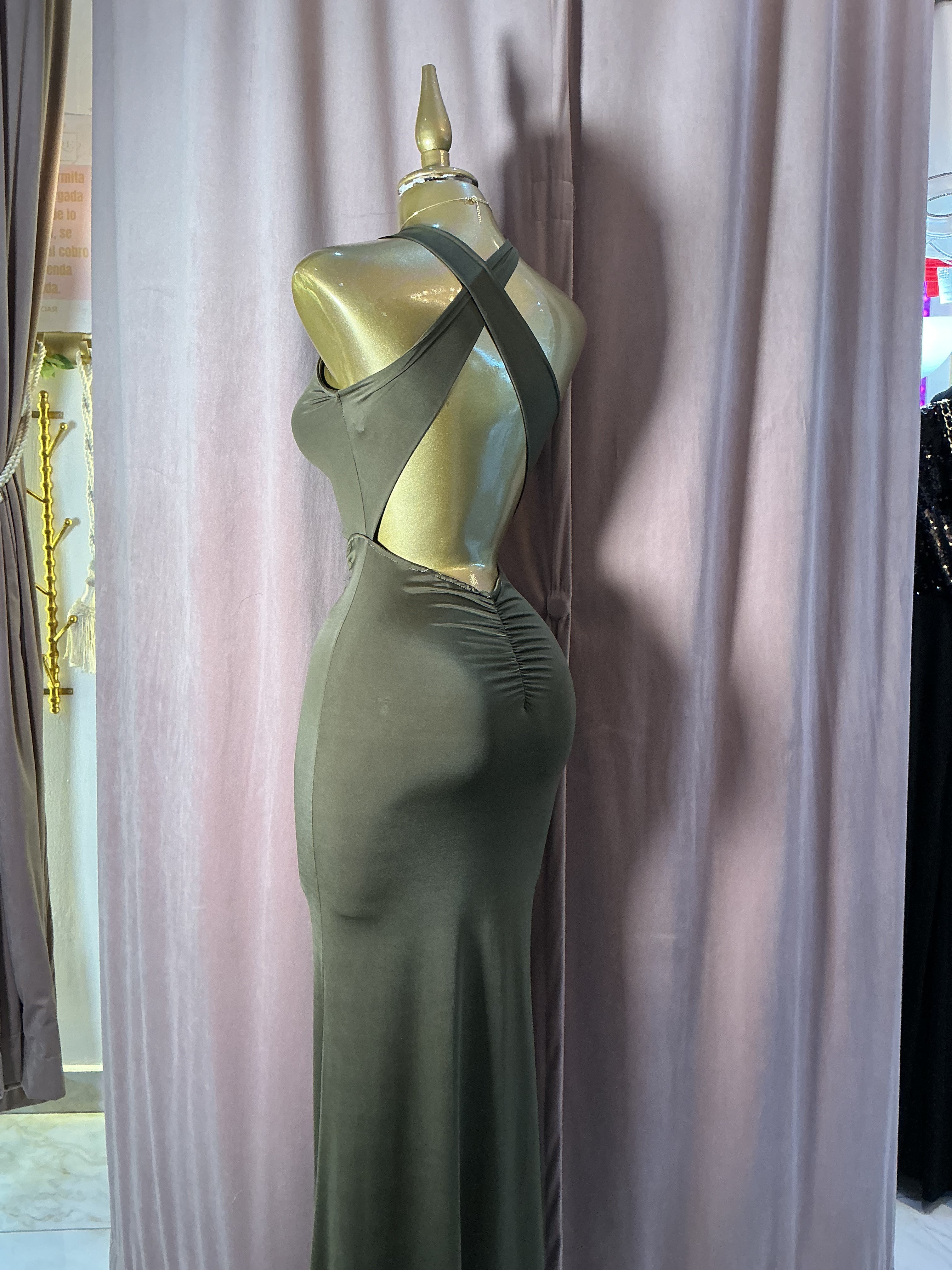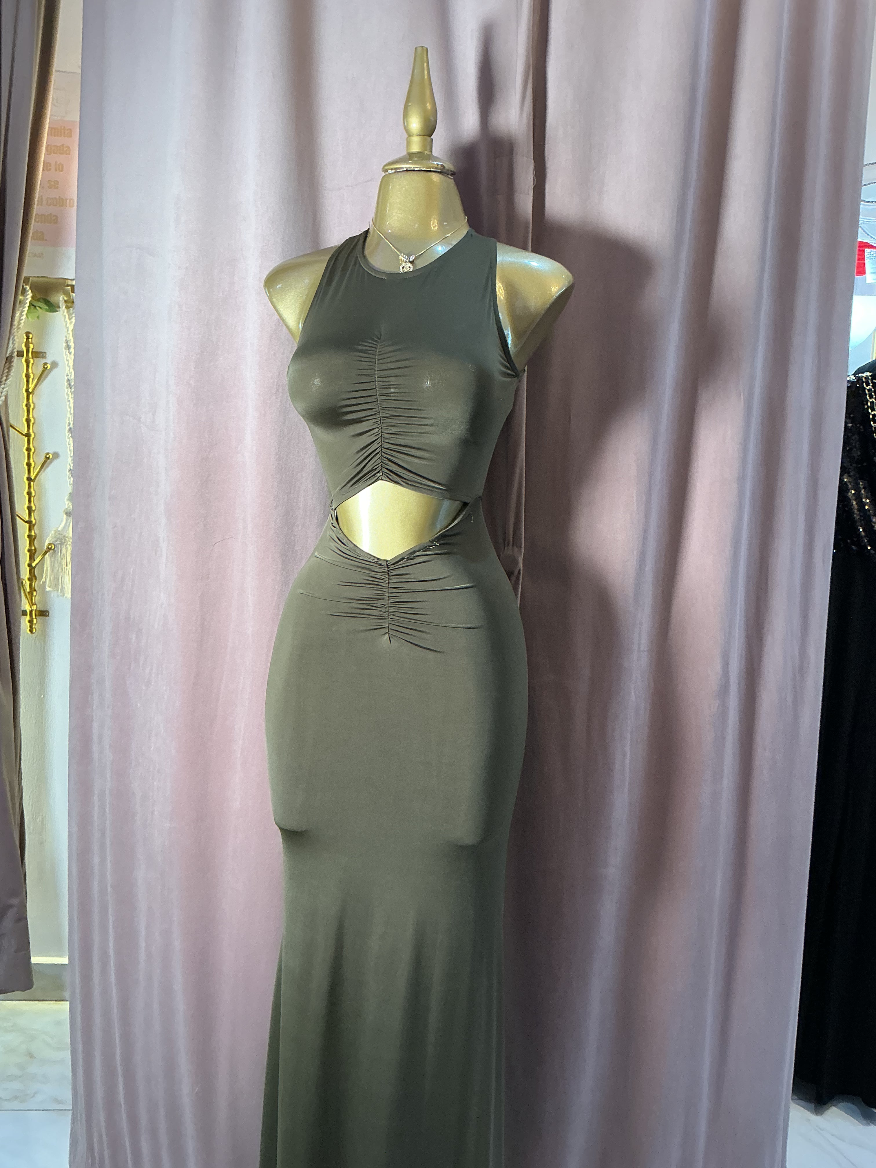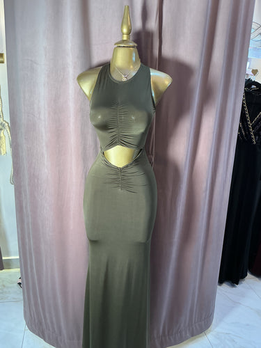 Vestido Largo Cut Out con Fruncido Frontal