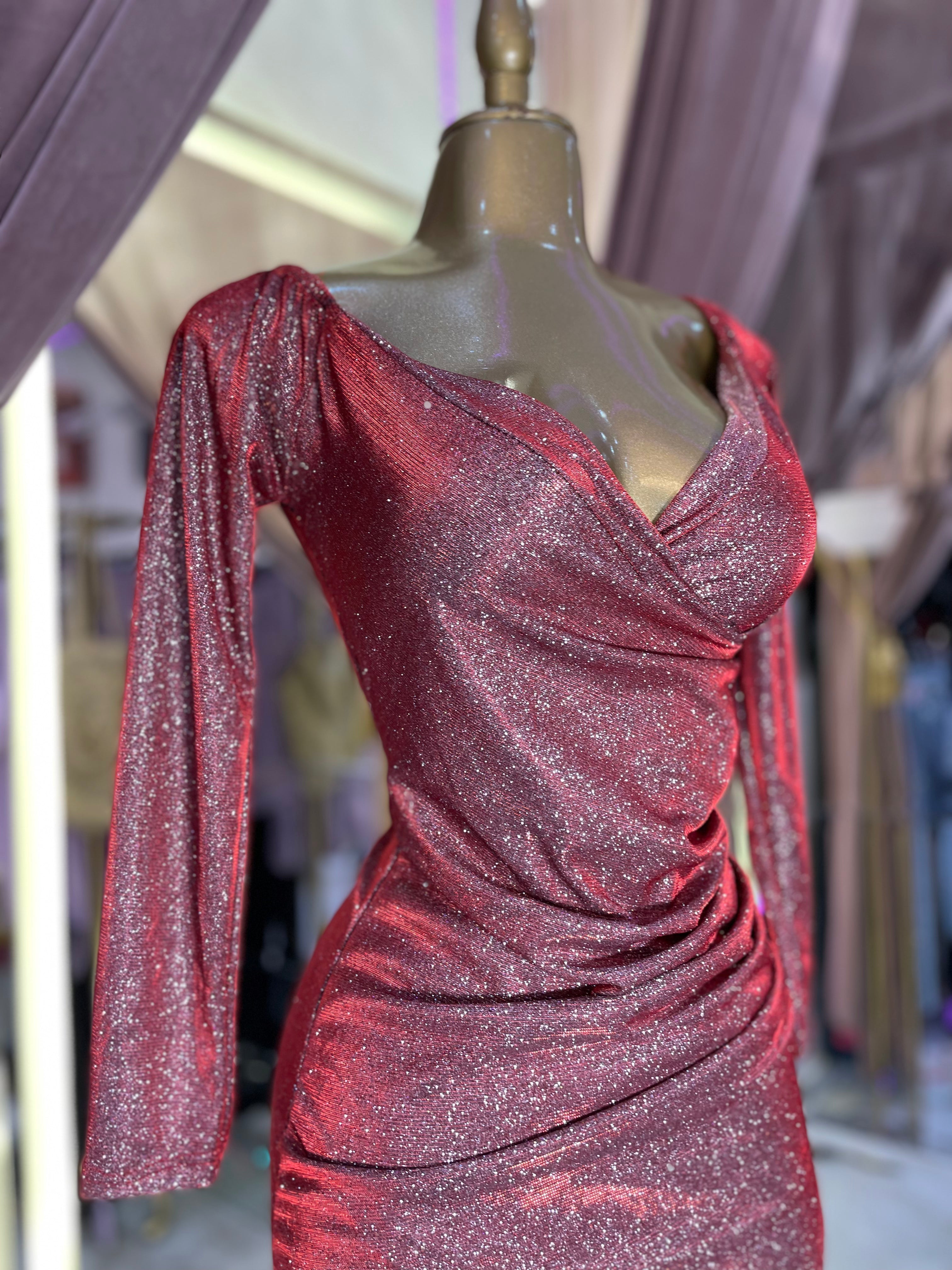 Este vestido con mangas largas y brillos es perfecto para cualquier ocasión. Disponible en dos colores, rosa y rojo, te hará lucir elegante y brillante. Ideal para eventos especiales o para un toque de glamour en tu día a día. Cómodo, versátil y lleno de estilo. ¡Hazte con el tuyo ahora!