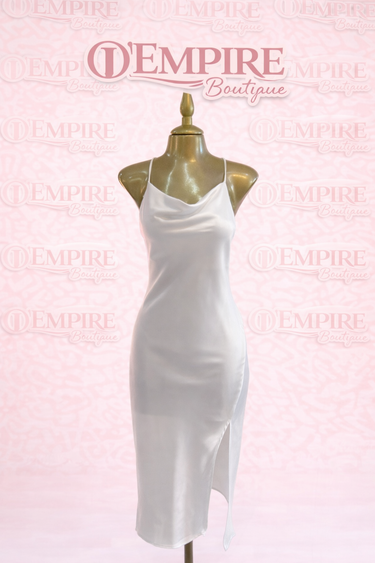 Su corte recto y caída suave se adapta al cuerpo de forma natural, mientras que la abertura lateral añade movimiento y sensualidad discreta. Ideal para eventos especiales, cenas elegantes, celebraciones o looks de novia civil con un estilo moderno y refinado.