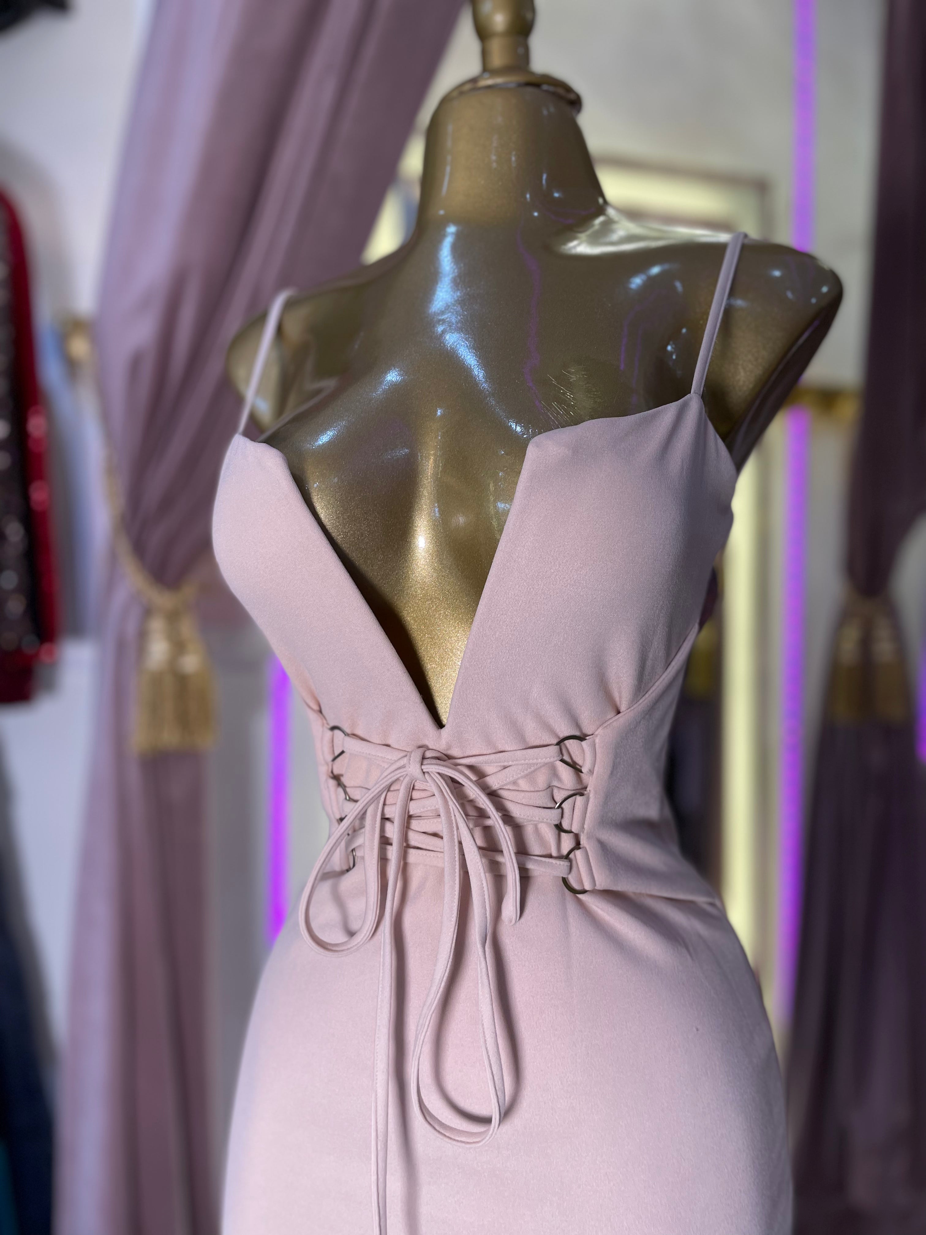 Este VESTIDO NUDE AJUSTABLE es perfecto para cualquier ocasión. El color nude es versátil y elegante, mientras que el ajuste te permite sentirte cómoda y segura. ¡Completa tu look con este hermoso vestido!
