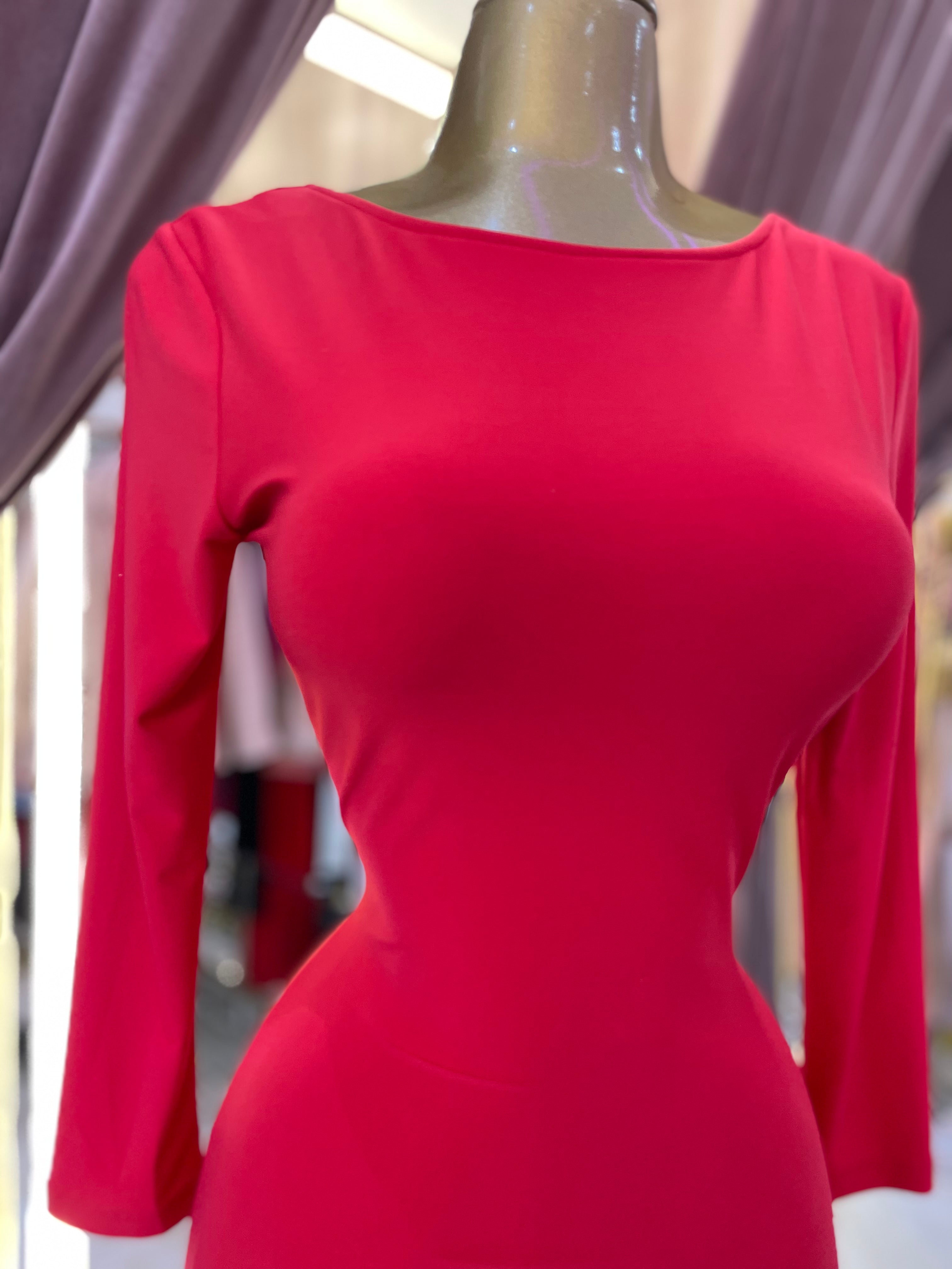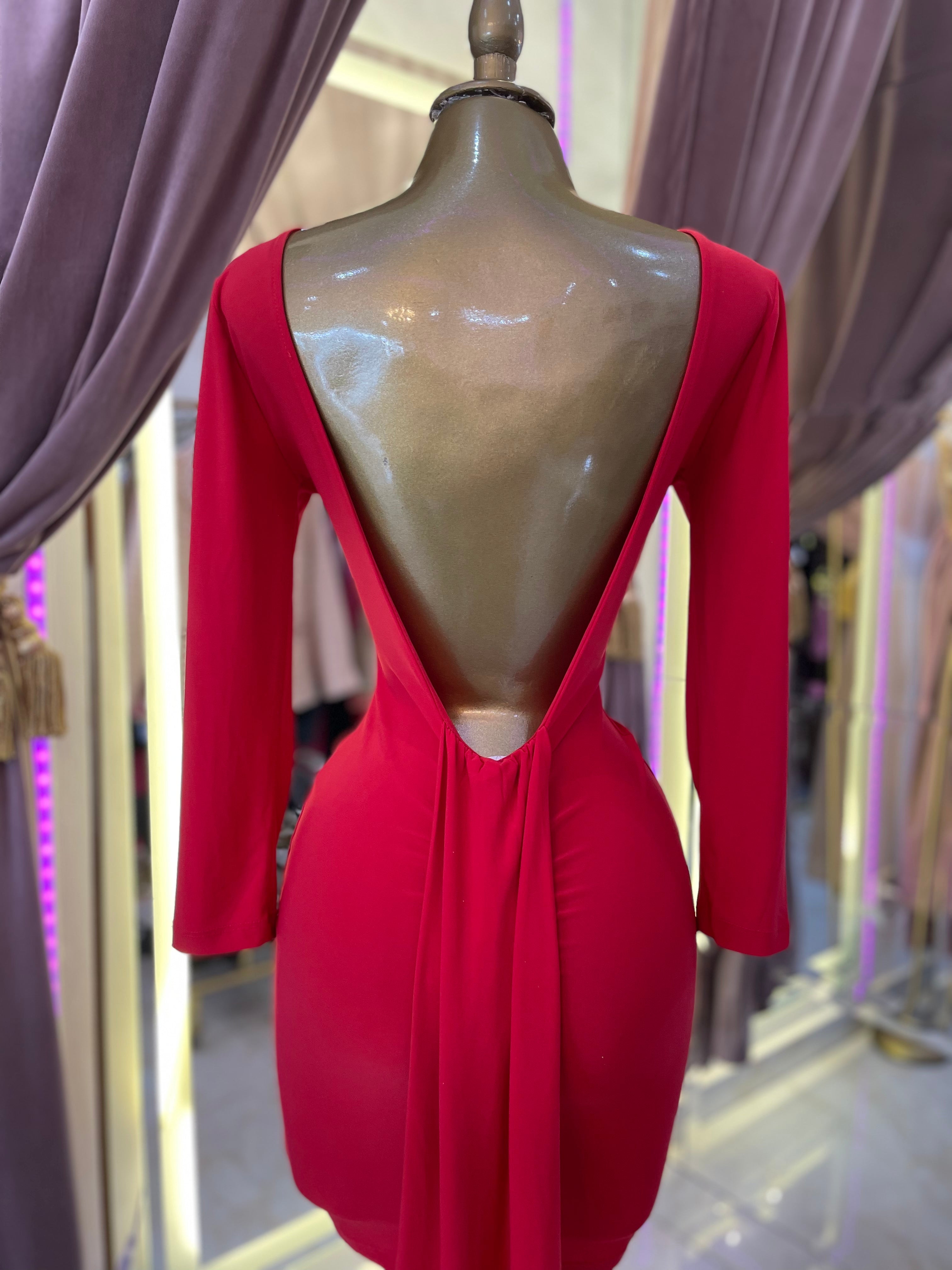 VESTIDO ROJO MANGA LARGA ESPALDA DESCUBIERTA