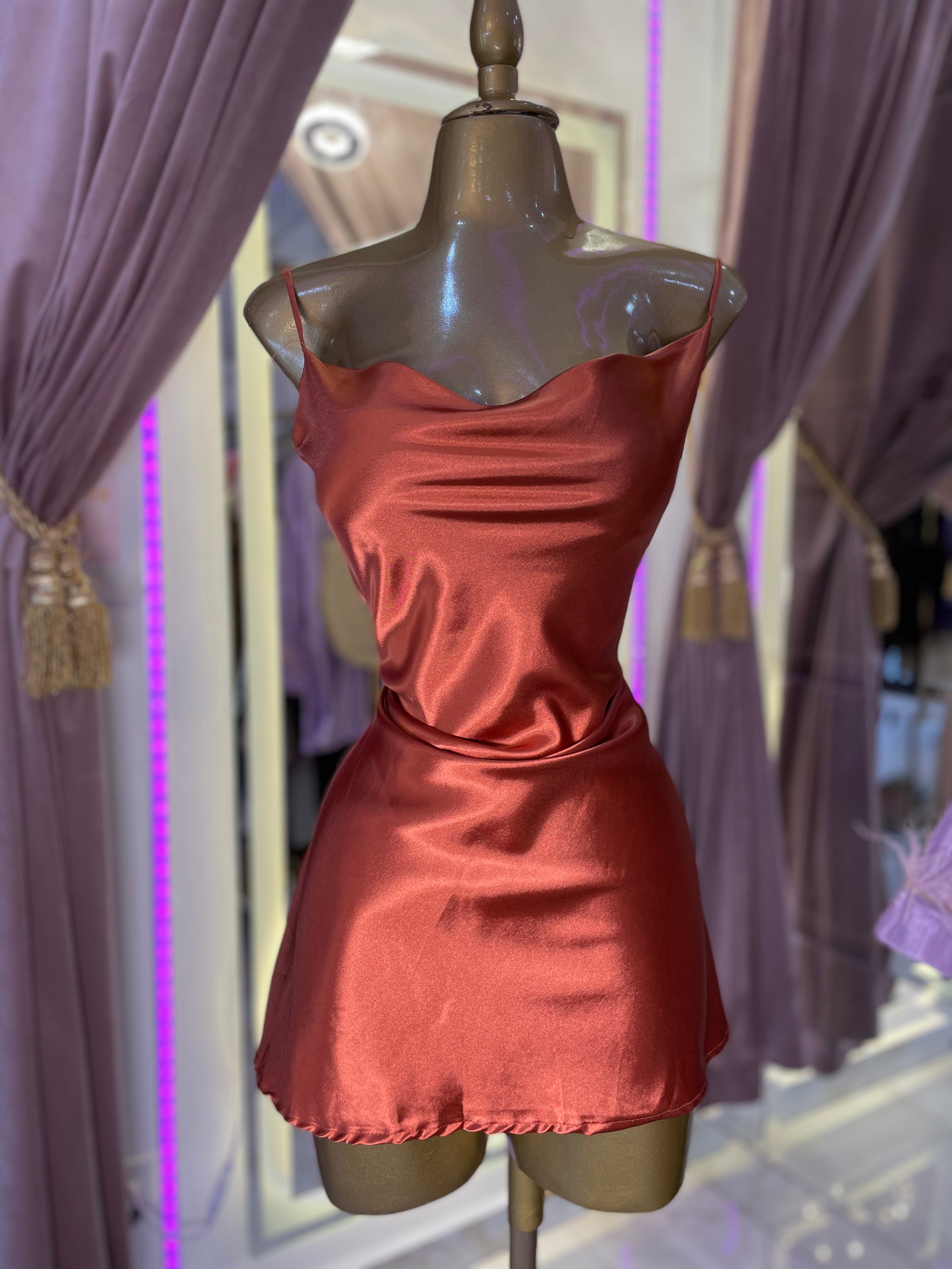 Este vestido de seda cobre es la elección perfecta para cualquier ocasión. Su suave y lujosa tela te hará destacar y sentirte cómoda al mismo tiempo. Con un estilo clásico y elegante, este vestido es una inversión en tu guardarropa que te brindará estilo y comodidad a la vez.