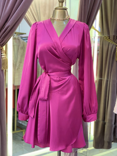 ¡Siéntete hermosa y elegante con nuestro hermoso vestido de seda con moño! Disponible en los colores magenta y celeste, este vestido te hará lucir sofisticada y a la moda. Confeccionado con materiales de alta calidad, te garantizamos comodidad y estilo en cualquier ocasión. ¡Encuentra tu color favorito y luce increíble hoy mismo!