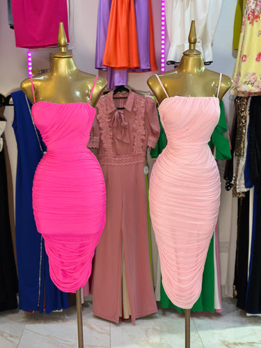 Realza tu figura con nuestro vestido de tirantes midi en tres colores: celeste, rosa, fiusha, azul, negro y rojo. Perfecto para cualquier ocasión, su diseño te hará lucir elegante y moderna. Disponible en tallas S y L. ¡Hazte con el tuyo ahora!
