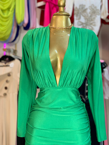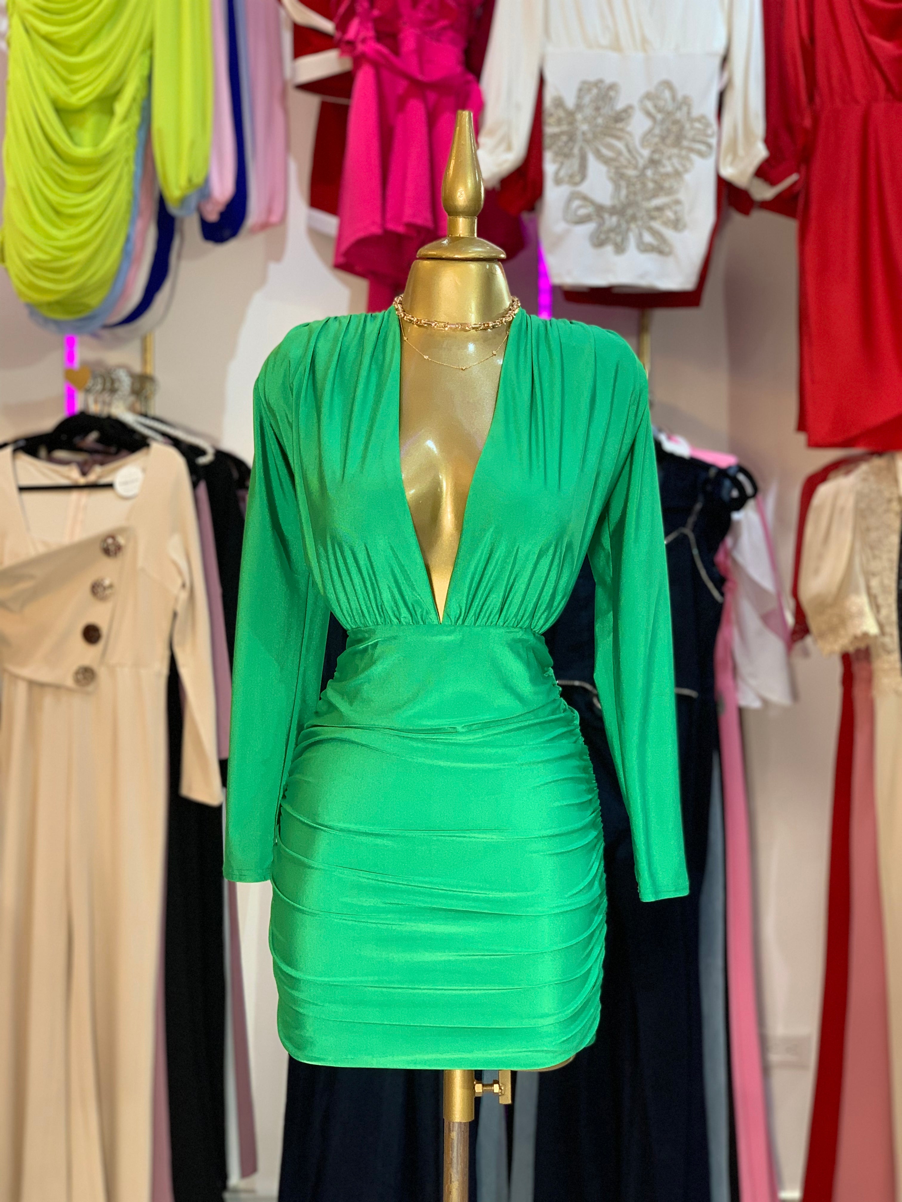 VESTIDO VERDE MANGA LARGA CUELLO EN V