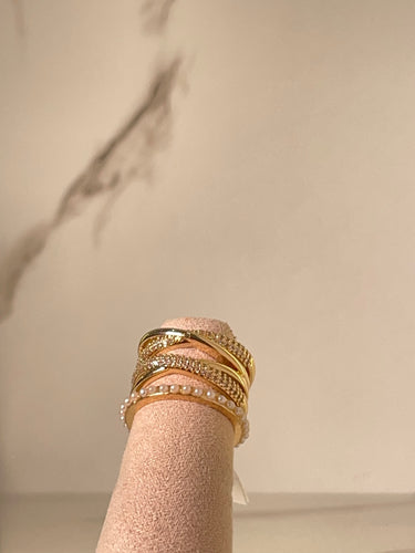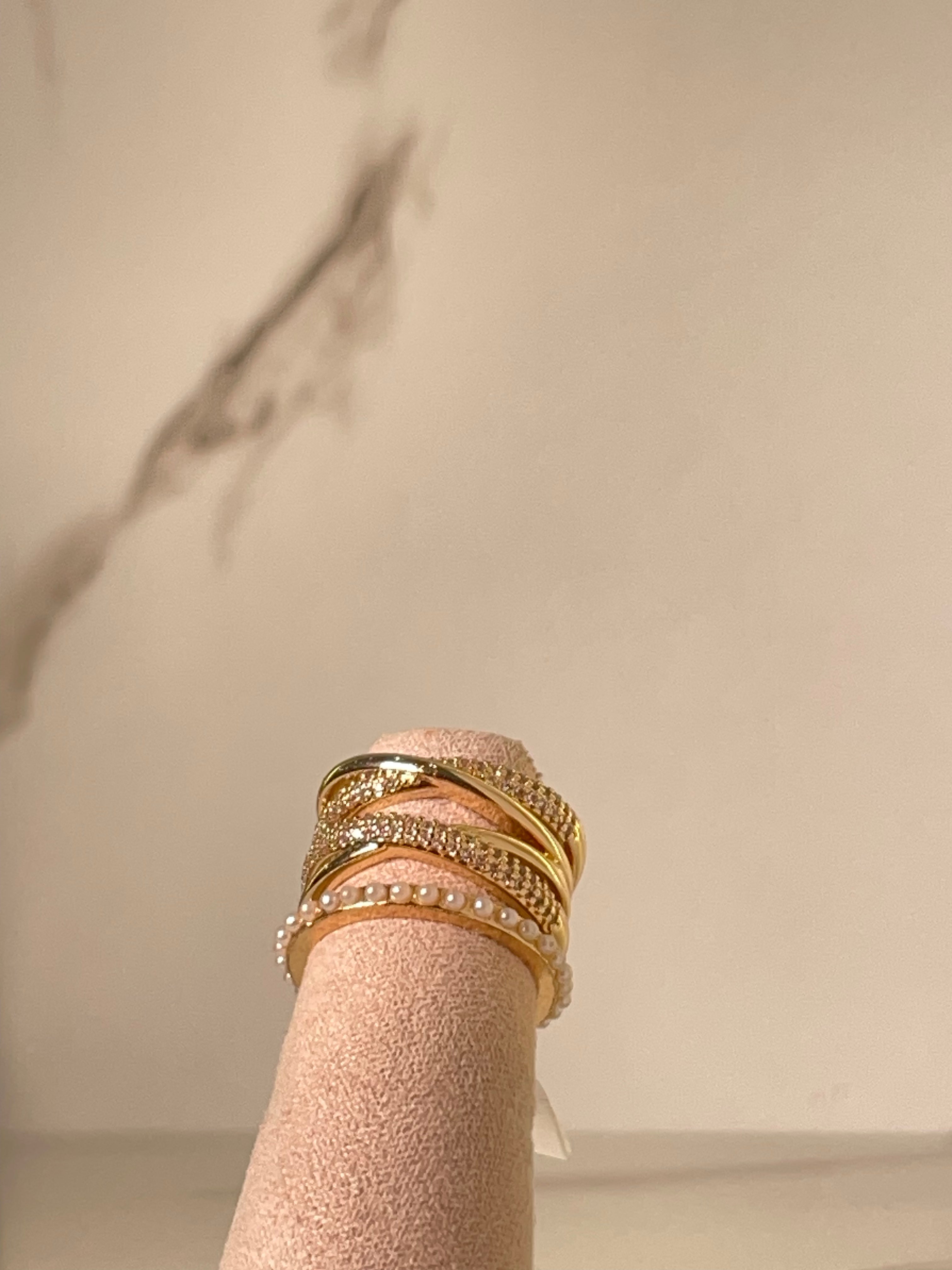 Este elegante anillo de oro laminado y perlas es la elección perfecta para cualquier ocasión. Su diseño clásico y sofisticado se adapta a cualquier estilo y resalta la belleza natural de las perlas. Hazte con él hoy y añade un toque de elegancia a tu colección de joyas.