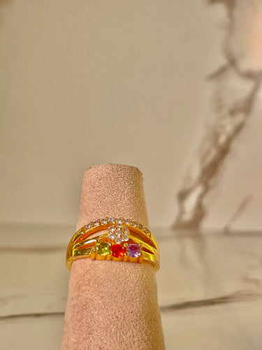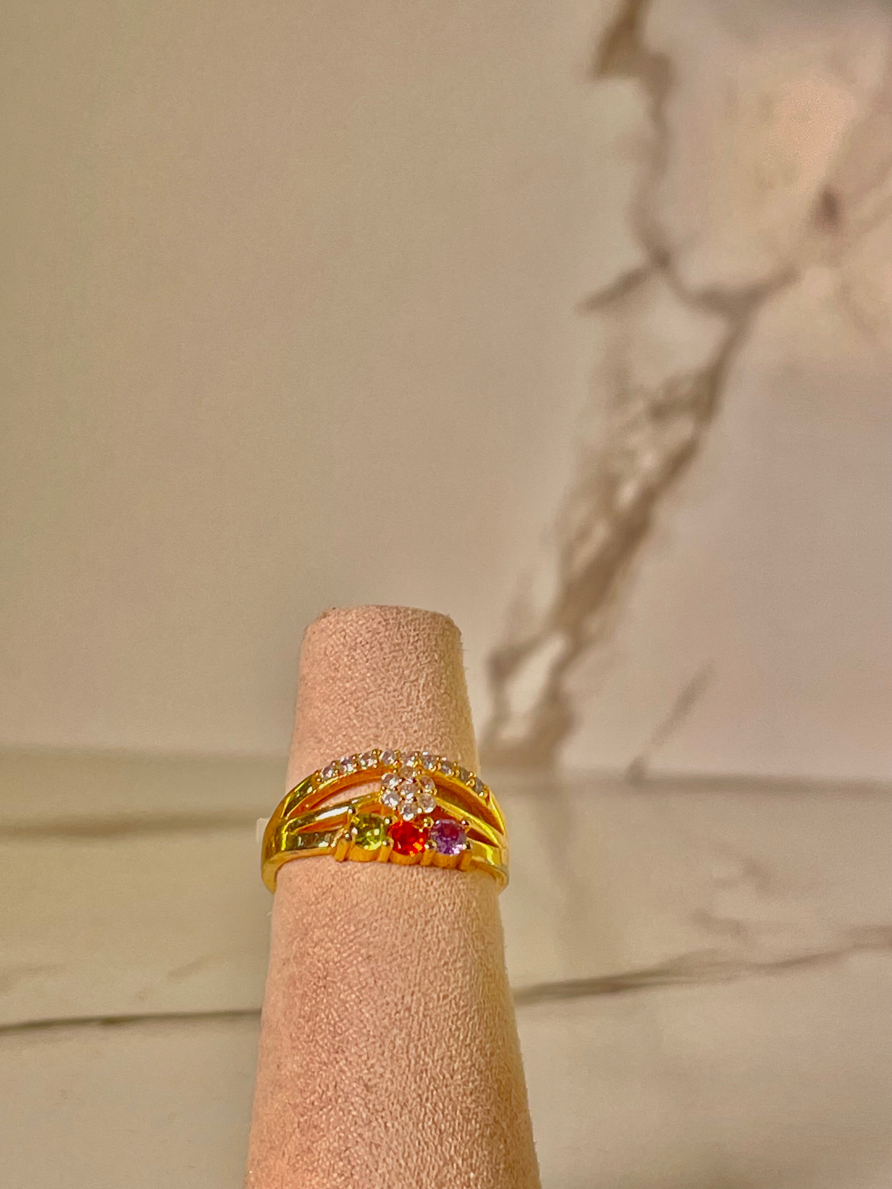 Agrega elegancia a tus manos con nuestro Anillo Pedrería Gold. Este delicado anillo cuenta con detalles de oro que destacan con cualquier atuendo. ¡Luce radiante y sofisticada con este accesorio de alta calidad!