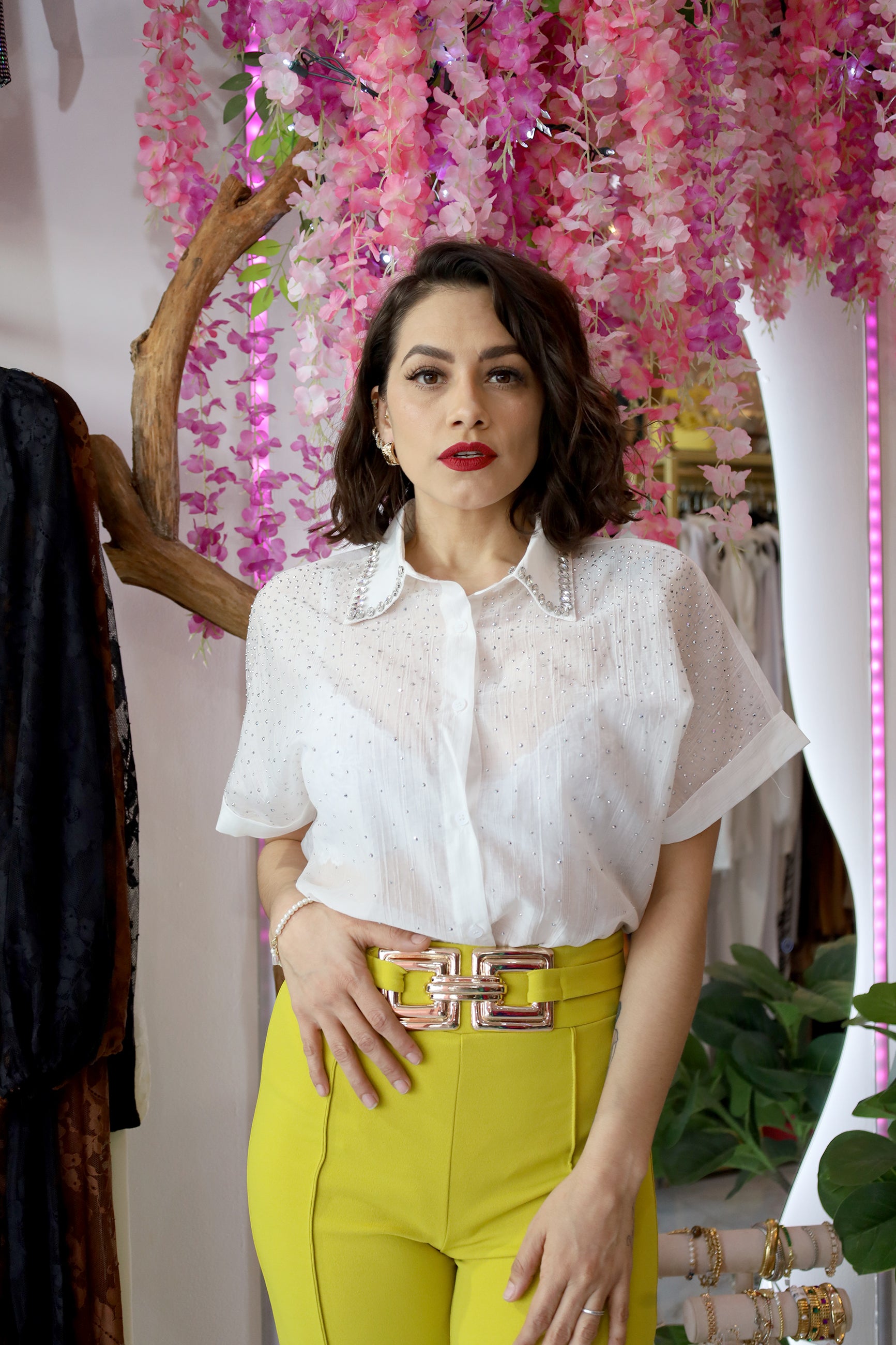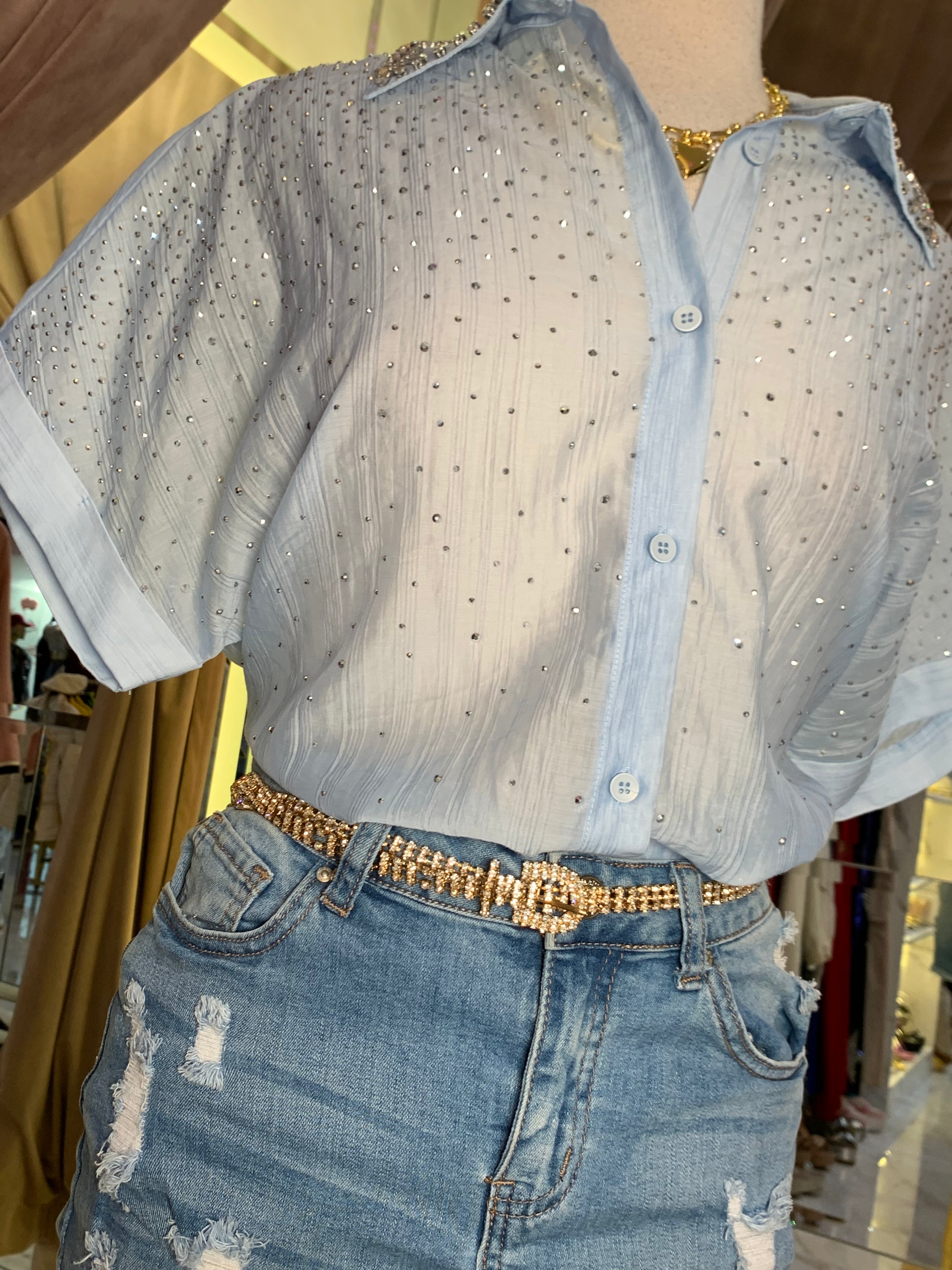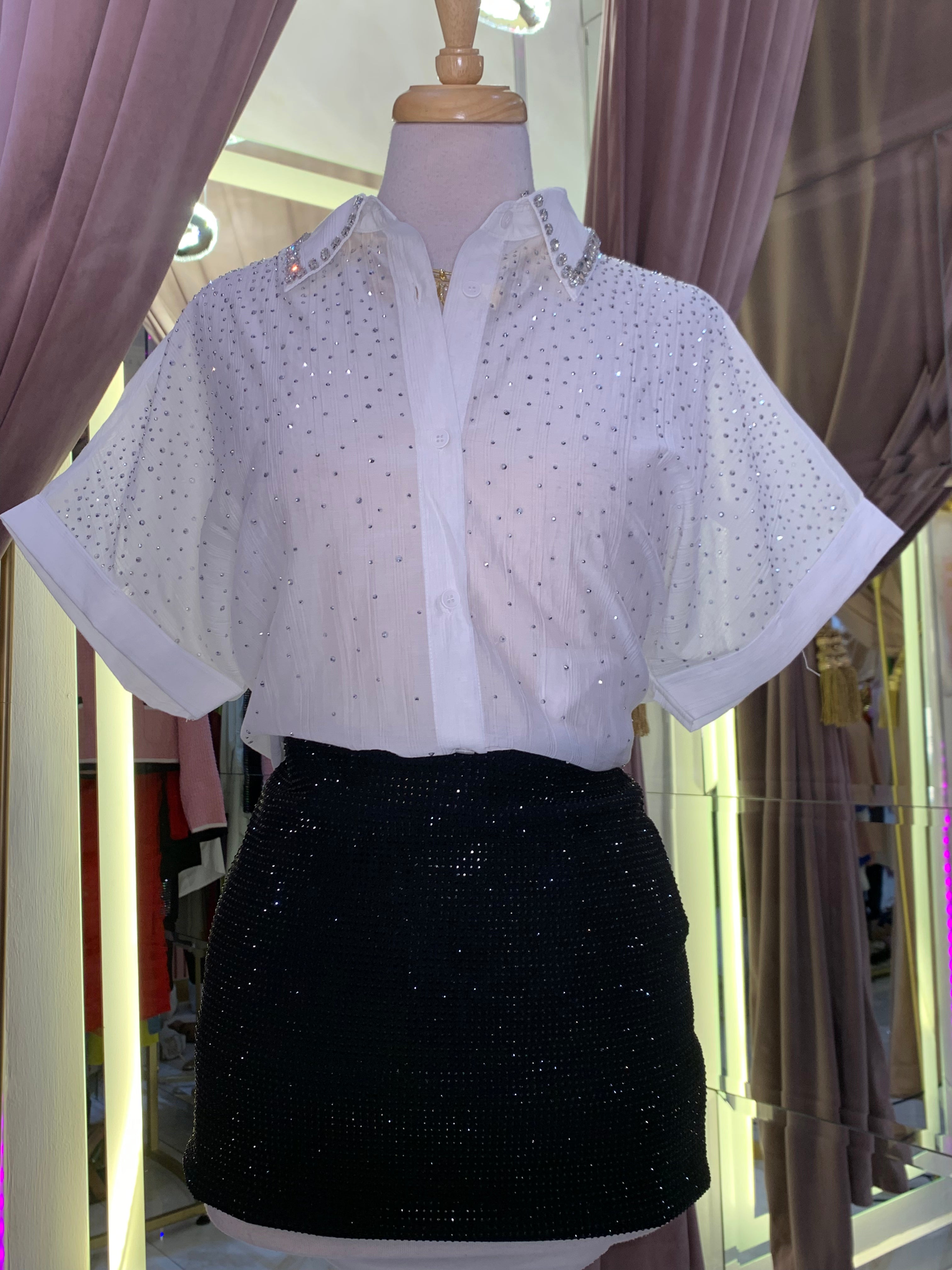 Ambas versiones cuentan con un diseño de mangas cortas y un cuello clásico decorado con detalles brillantes, que aportan un toque refinado. Confeccionadas en un material ligero y cómodo, estas blusas son ideales para combinar con faldas, pantalones o shorts, logrando un look chic y moderno que no pasará desapercibido.