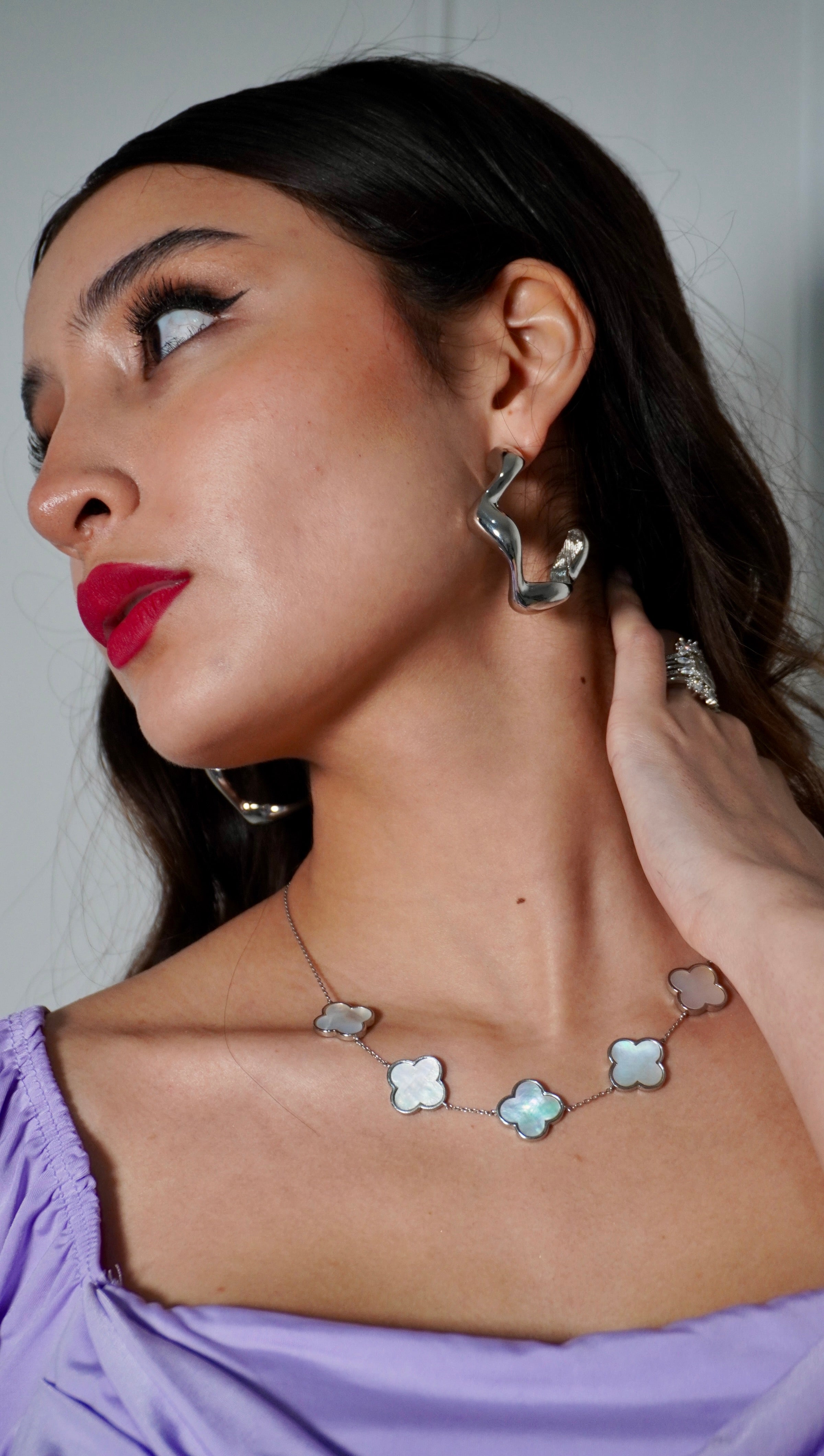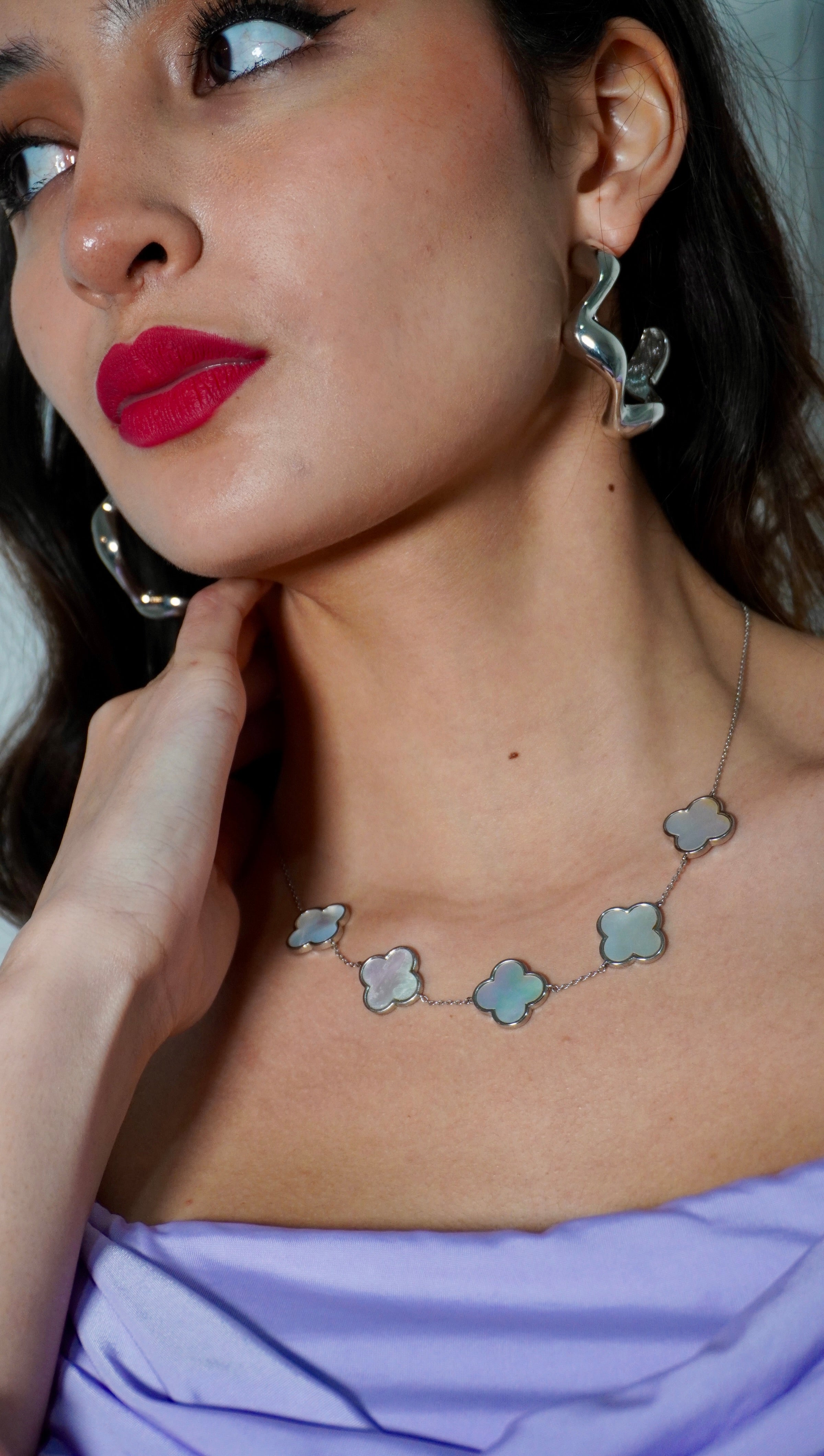 Este hermoso collar de plata con elegantes flores es perfecto para complementar cualquier look. Sus detalles florales agregan un toque femenino y su estilo clásico lo hace ideal para cualquier ocasión. Además, su material de alta calidad garantiza durabilidad y brillo duradero. ¡Haz una declaración de moda con este collar de plata flores!