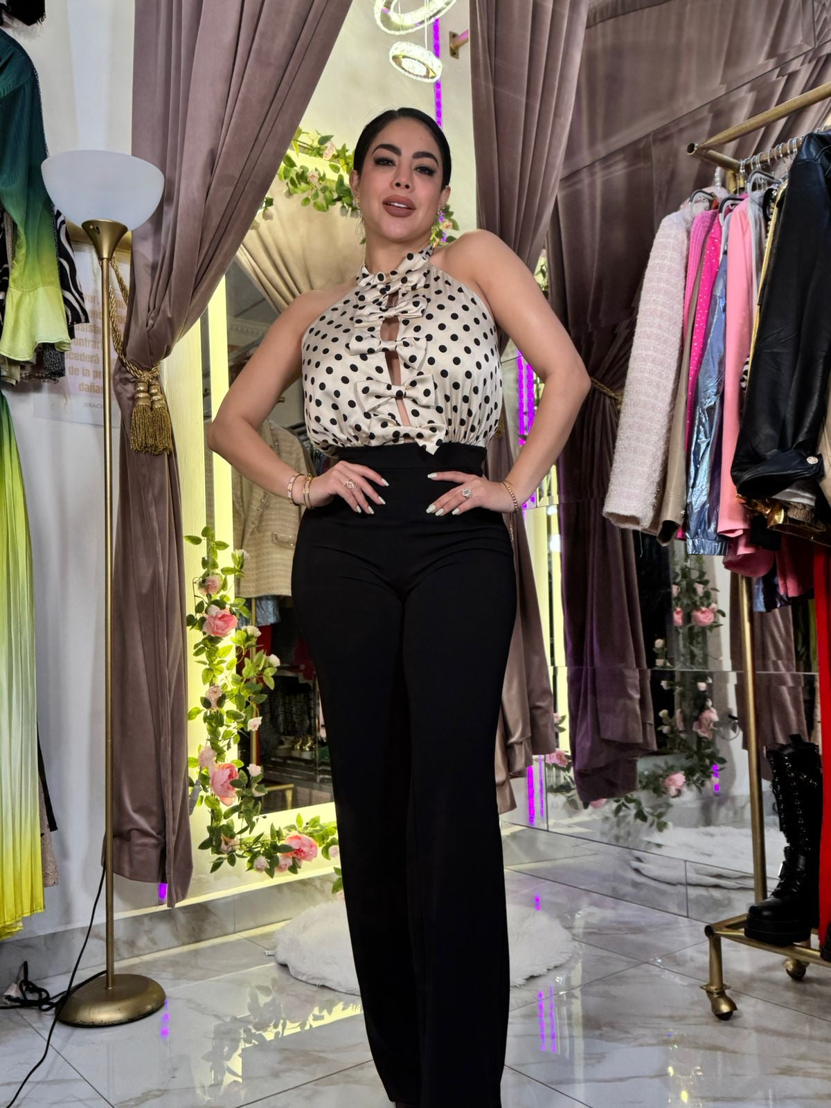 JUMPSUIT BLACK/BEIGE PUNTOS