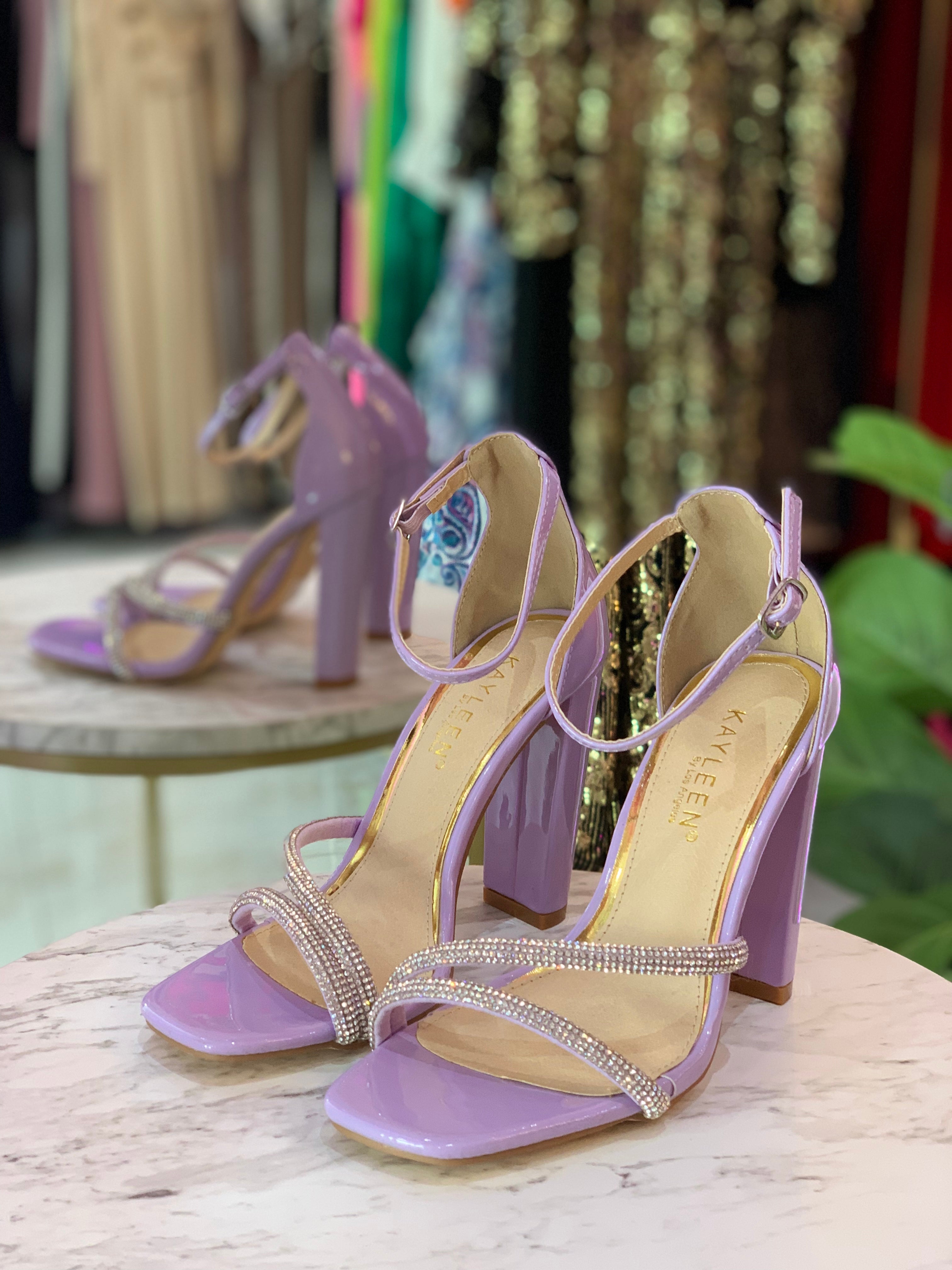 Este tacón en tono lila suave es la combinación perfecta entre estilo y comodidad. Su tacón cuadrado ofrece mayor estabilidad, ideal para lucirlo durante horas, mientras que las tiras con brillos plateados añaden un toque de glamour sutil y moderno