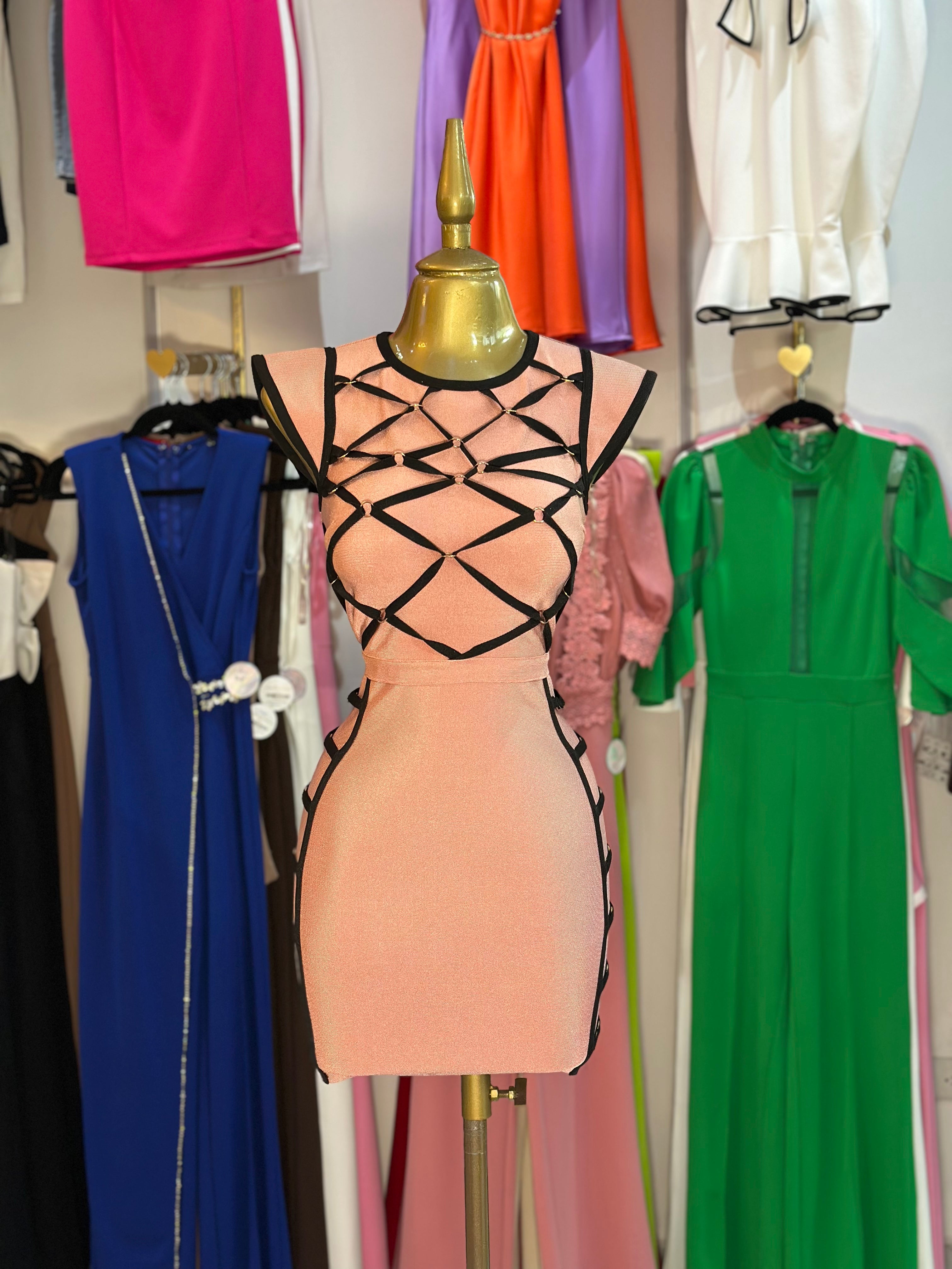 VESTIDO BANDAGE CON TIRAS NEGRAS